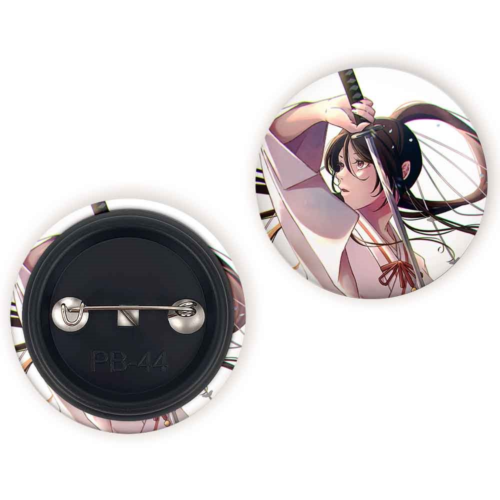 پیکسل 44 میلی متری ساگیری انیمه بهشت جهنمیان خندالو با روکش سلفون حرارتی مات مخملی ضدخش و قطعه پشتی رنگی تولید شده است.پلاستیکی پشت پیکسل با سوزن یک تکه ثابت و بدون لغزش و جا به جایی، ایستایی بسیار بهتری نسبت به پشتی فلزی پیکسل دارند که این مهم در تولید این محصول نیز رعایت شده است.