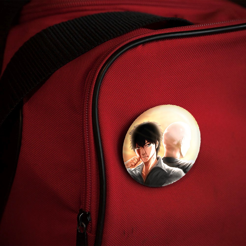 پیکسل 44 میلی متری سایتاما انیمه مرد تک مشتی One Punch Man خندالو با روکش سلفون حرارتی مات مخملی ضدخش و قطعه پشتی رنگی تولید شده است.پلاستیکی پشت پیکسل با سوزن یک تکه ثابت و بدون لغزش و جا به جایی، ایستایی بسیار بهتری نسبت به پشتی فلزی پیکسل دارند که این مهم در تولید این محصول نیز رعایت شده است.