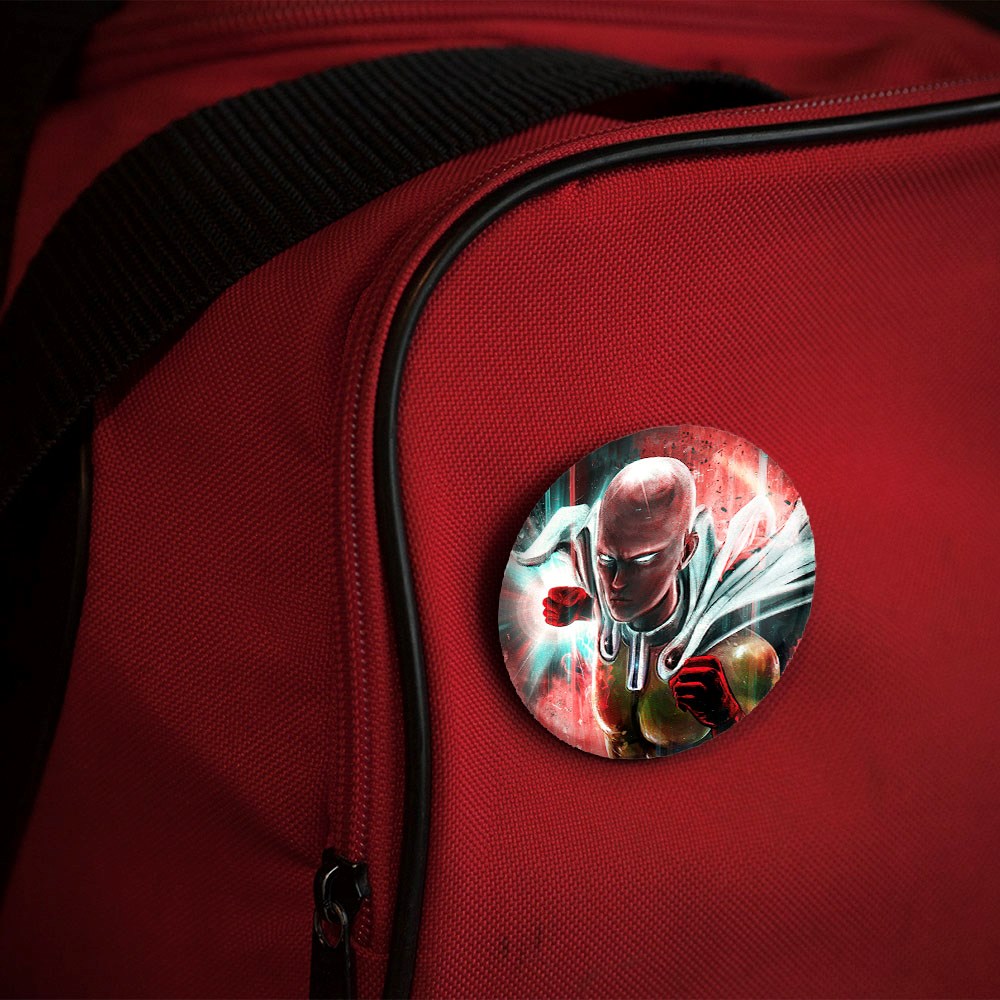 پیکسل 44 میلی متری سایتاما انیمه مرد تک مشتی One Punch Man خندالو با روکش سلفون حرارتی مات مخملی ضدخش و قطعه پشتی رنگی تولید شده است.پلاستیکی پشت پیکسل با سوزن یک تکه ثابت و بدون لغزش و جا به جایی، ایستایی بسیار بهتری نسبت به پشتی فلزی پیکسل دارند که این مهم در تولید این محصول نیز رعایت شده است.
