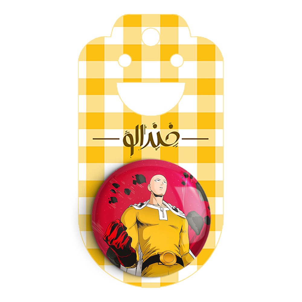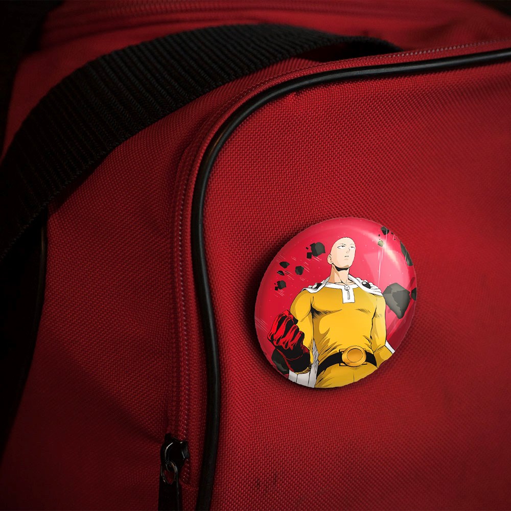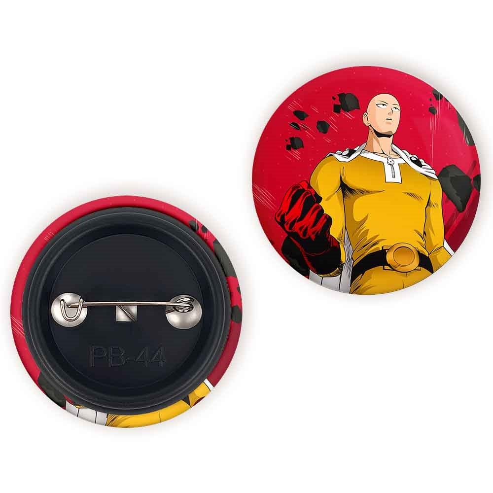 پیکسل 44 میلی متری سایتاما انیمه مرد تک مشتی One Punch Man خندالو با روکش سلفون حرارتی مات مخملی ضدخش و قطعه پشتی رنگی تولید شده است.پلاستیکی پشت پیکسل با سوزن یک تکه ثابت و بدون لغزش و جا به جایی، ایستایی بسیار بهتری نسبت به پشتی فلزی پیکسل دارند که این مهم در تولید این محصول نیز رعایت شده است.