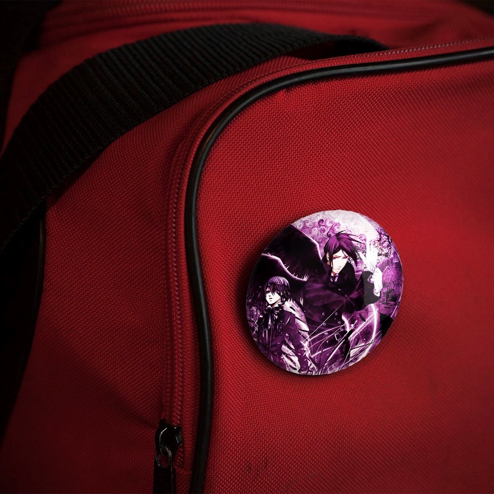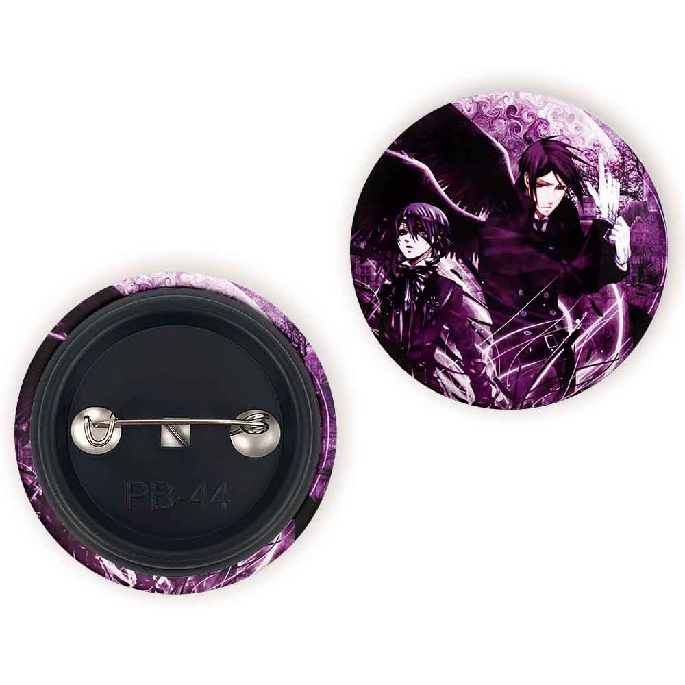 پیکسل 44 میلی متری سباستین و شیل انیمه خادم سیاه Black Butler خندالو با روکش سلفون حرارتی مات مخملی ضدخش و قطعه پشتی رنگی تولید شده است.پلاستیکی پشت پیکسل با سوزن یک تکه ثابت و بدون لغزش و جا به جایی، ایستایی بسیار بهتری نسبت به پشتی فلزی پیکسل دارند که این مهم در تولید این محصول نیز رعایت شده است.