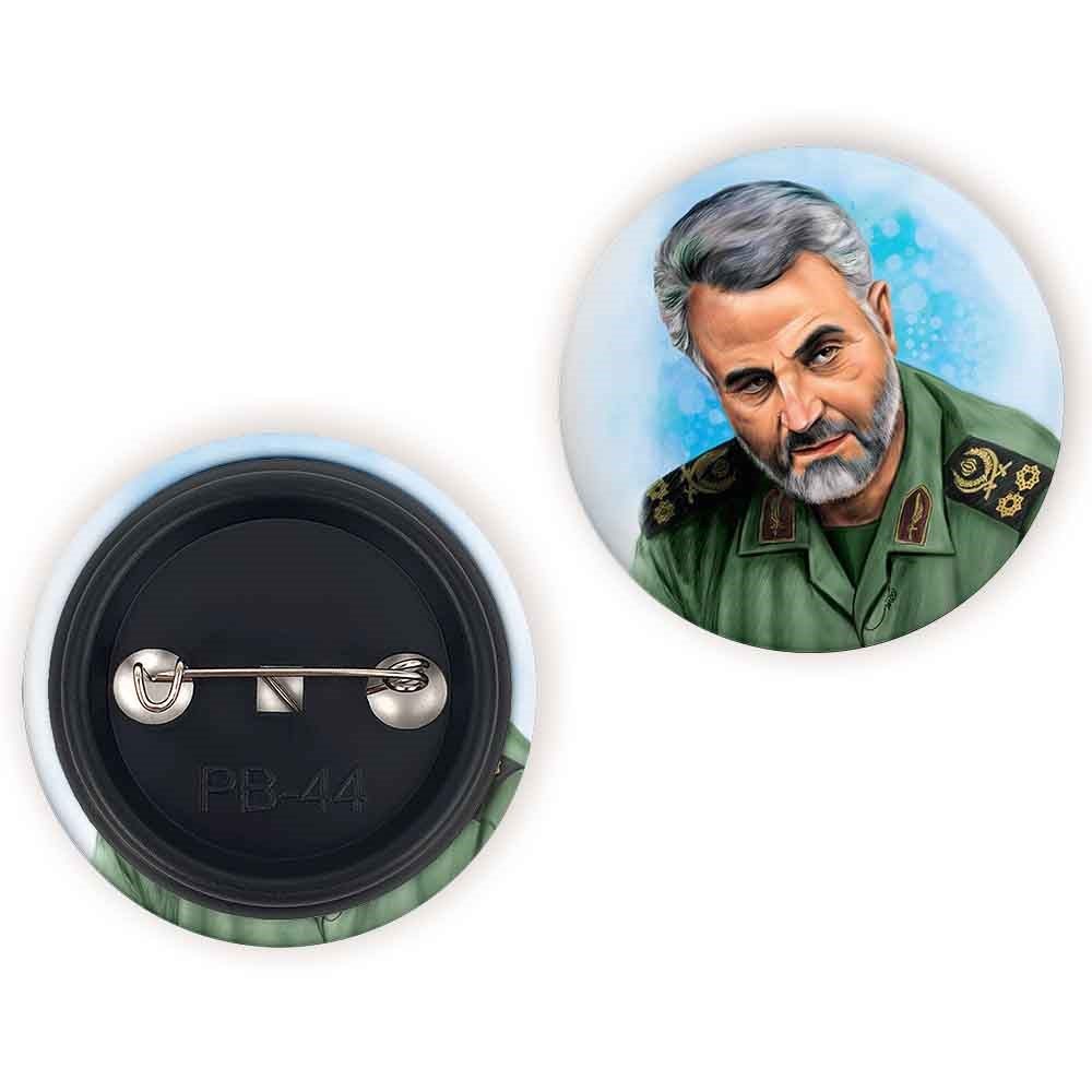 پیکسل 44 میلی متری سردار قاسم سلیمانی خندالو با روکش سلفون حرارتی مات مخملی ضدخش و قطعه پشتی رنگی تولید شده است.پلاستیکی پشت پیکسل با سوزن یک تکه ثابت و بدون لغزش و جا به جایی، ایستایی بسیار بهتری نسبت به پشتی فلزی پیکسل دارند که این مهم در تولید این محصول نیز رعایت شده است.