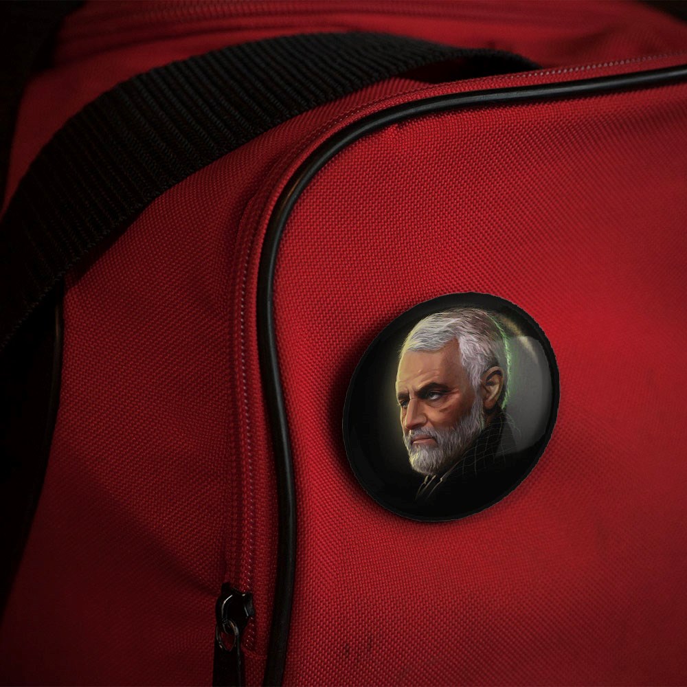پیکسل 44 میلی متری سردار قاسم سلیمانی خندالو با روکش سلفون حرارتی مات مخملی ضدخش و قطعه پشتی رنگی تولید شده است.پلاستیکی پشت پیکسل با سوزن یک تکه ثابت و بدون لغزش و جا به جایی، ایستایی بسیار بهتری نسبت به پشتی فلزی پیکسل دارند که این مهم در تولید این محصول نیز رعایت شده است.
