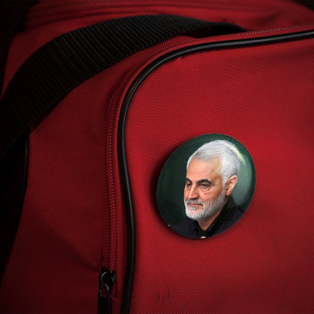 پیکسل 44 میلی متری سردار قاسم سلیمانی خندالو با روکش سلفون حرارتی مات مخملی ضدخش و قطعه پشتی رنگی تولید شده است.پلاستیکی پشت پیکسل با سوزن یک تکه ثابت و بدون لغزش و جا به جایی، ایستایی بسیار بهتری نسبت به پشتی فلزی پیکسل دارند که این مهم در تولید این محصول نیز رعایت شده است.
