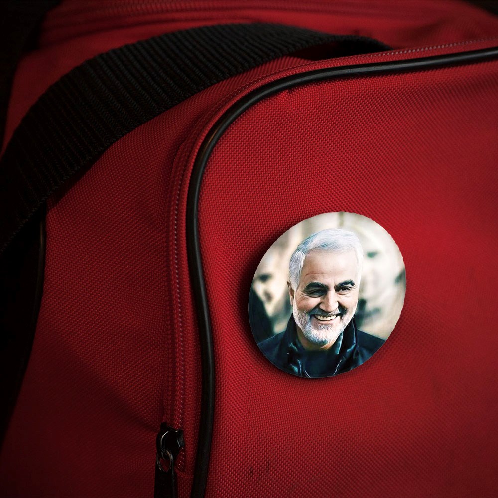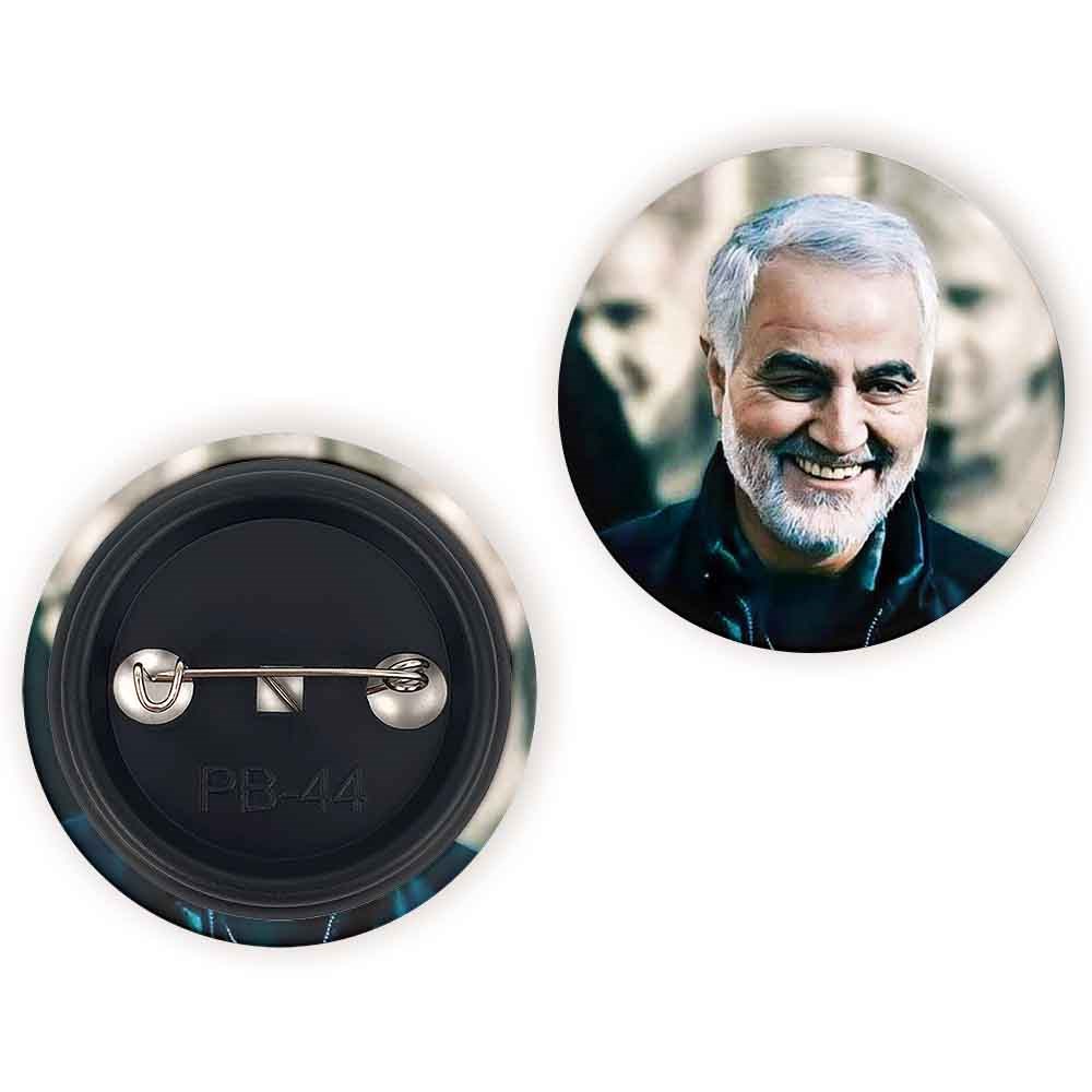 پیکسل 44 میلی متری سردار قاسم سلیمانی خندالو با روکش سلفون حرارتی مات مخملی ضدخش و قطعه پشتی رنگی تولید شده است.پلاستیکی پشت پیکسل با سوزن یک تکه ثابت و بدون لغزش و جا به جایی، ایستایی بسیار بهتری نسبت به پشتی فلزی پیکسل دارند که این مهم در تولید این محصول نیز رعایت شده است.