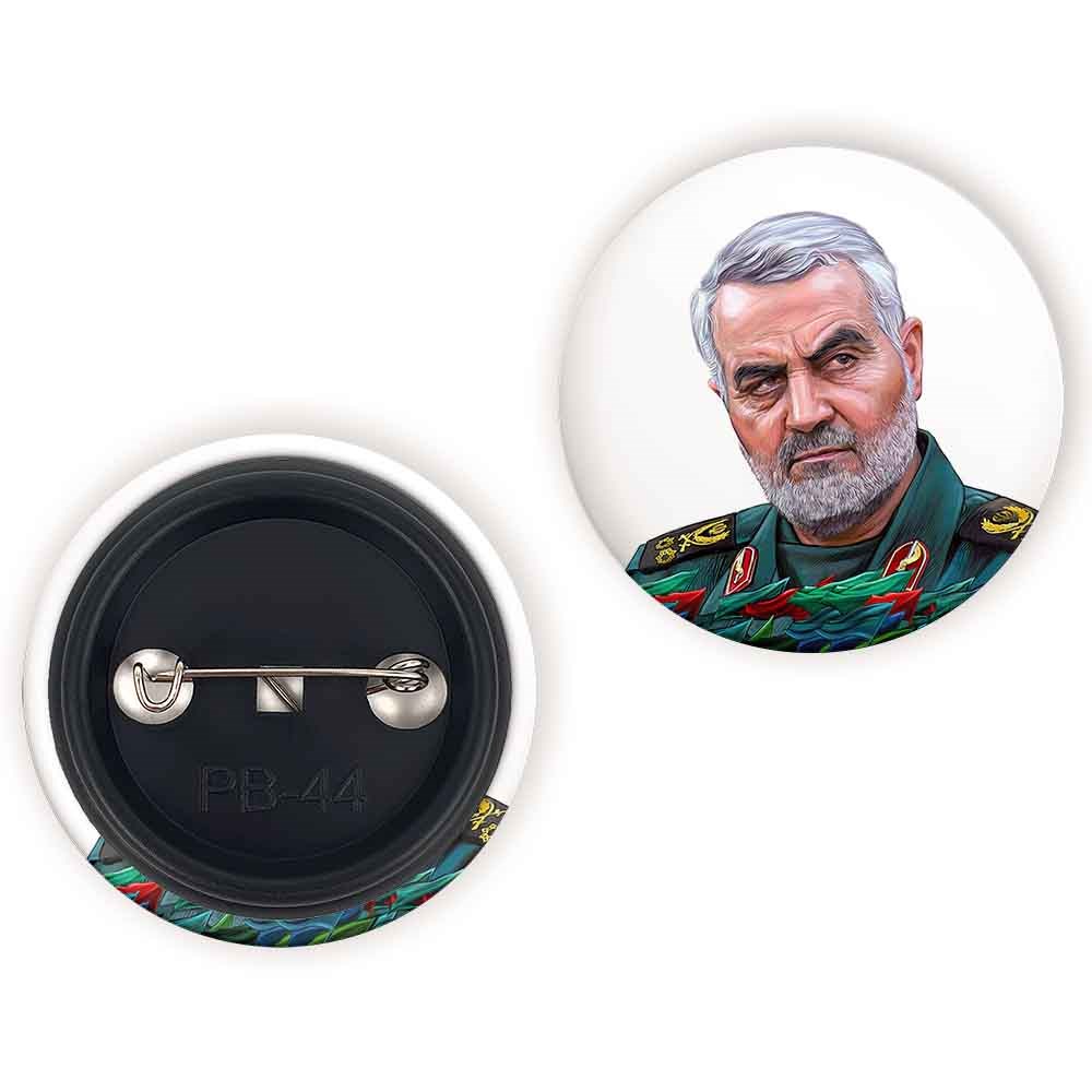 پیکسل 44 میلی متری سردار قاسم سلیمانی خندالو با روکش سلفون حرارتی مات مخملی ضدخش و قطعه پشتی رنگی تولید شده است.پلاستیکی پشت پیکسل با سوزن یک تکه ثابت و بدون لغزش و جا به جایی، ایستایی بسیار بهتری نسبت به پشتی فلزی پیکسل دارند که این مهم در تولید این محصول نیز رعایت شده است.
