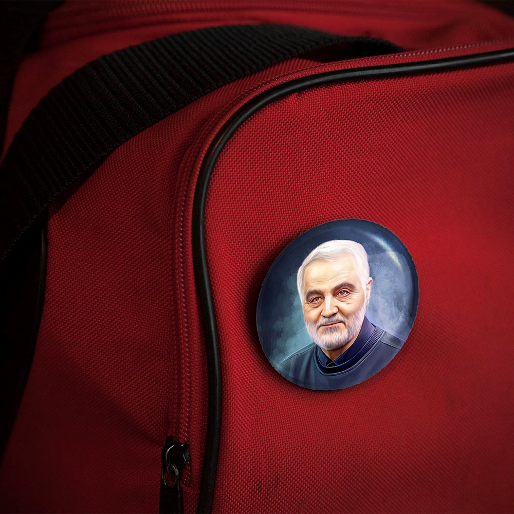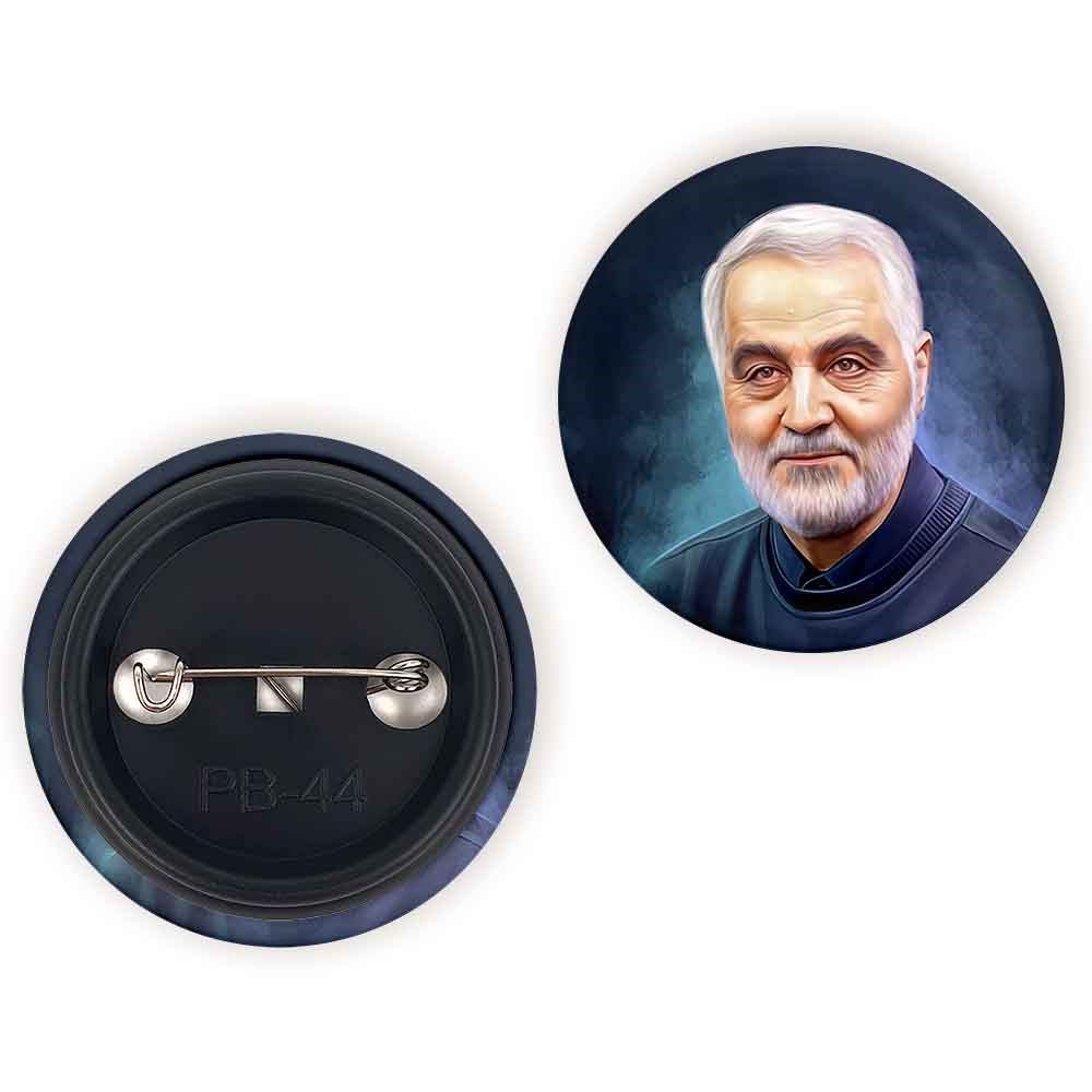 پیکسل 44 میلی متری سردار قاسم سلیمانی خندالو با روکش سلفون حرارتی مات مخملی ضدخش و قطعه پشتی رنگی تولید شده است.پلاستیکی پشت پیکسل با سوزن یک تکه ثابت و بدون لغزش و جا به جایی، ایستایی بسیار بهتری نسبت به پشتی فلزی پیکسل دارند که این مهم در تولید این محصول نیز رعایت شده است.