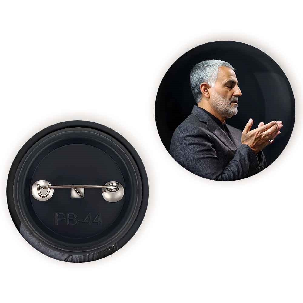 پیکسل 44 میلی متری سردار قاسم سلیمانی خندالو با روکش سلفون حرارتی مات مخملی ضدخش و قطعه پشتی رنگی تولید شده است.پلاستیکی پشت پیکسل با سوزن یک تکه ثابت و بدون لغزش و جا به جایی، ایستایی بسیار بهتری نسبت به پشتی فلزی پیکسل دارند که این مهم در تولید این محصول نیز رعایت شده است.