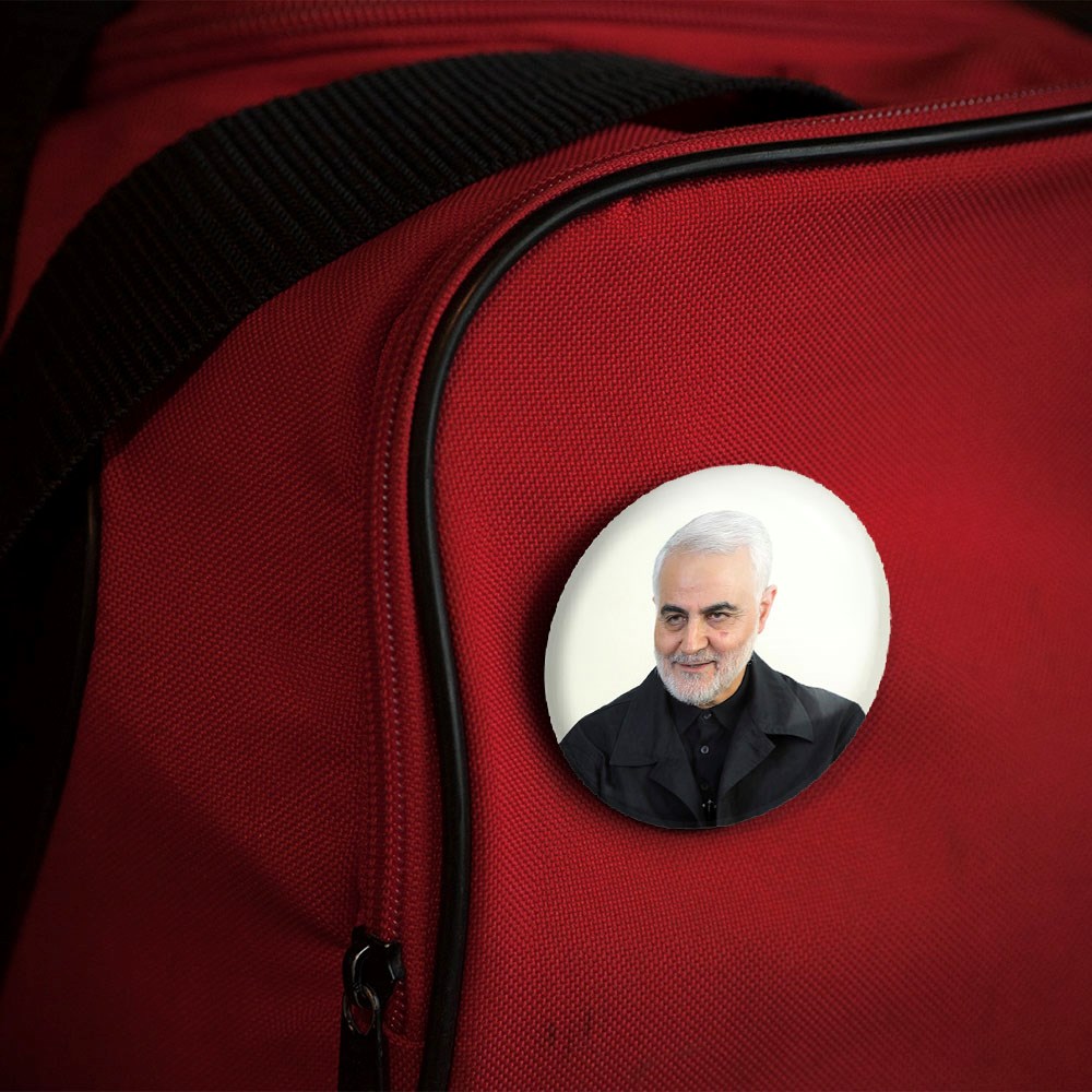 پیکسل 44 میلی متری سردار قاسم سلیمانی خندالو با روکش سلفون حرارتی مات مخملی ضدخش و قطعه پشتی رنگی تولید شده است.پلاستیکی پشت پیکسل با سوزن یک تکه ثابت و بدون لغزش و جا به جایی، ایستایی بسیار بهتری نسبت به پشتی فلزی پیکسل دارند که این مهم در تولید این محصول نیز رعایت شده است.