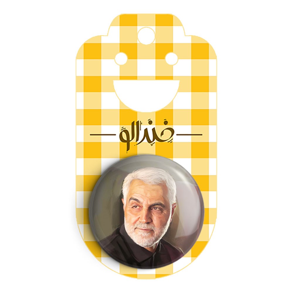 پیکسل 44 میلی متری سردار قاسم سلیمانی خندالو با روکش سلفون حرارتی مات مخملی ضدخش و قطعه پشتی رنگی تولید شده است.پلاستیکی پشت پیکسل با سوزن یک تکه ثابت و بدون لغزش و جا به جایی، ایستایی بسیار بهتری نسبت به پشتی فلزی پیکسل دارند که این مهم در تولید این محصول نیز رعایت شده است.