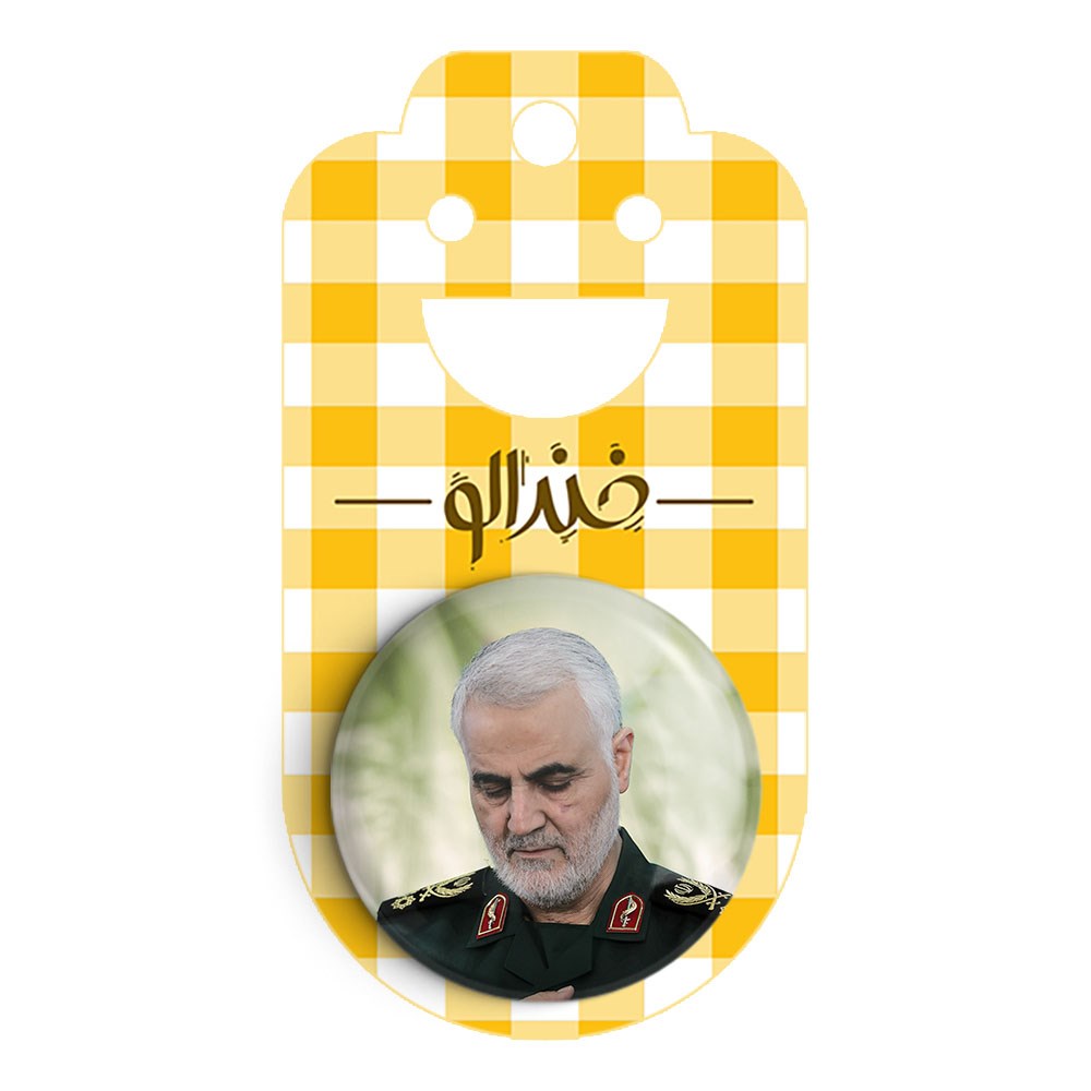 پیکسل 44 میلی متری سردار قاسم سلیمانی خندالو با روکش سلفون حرارتی مات مخملی ضدخش و قطعه پشتی رنگی تولید شده است.پلاستیکی پشت پیکسل با سوزن یک تکه ثابت و بدون لغزش و جا به جایی، ایستایی بسیار بهتری نسبت به پشتی فلزی پیکسل دارند که این مهم در تولید این محصول نیز رعایت شده است.