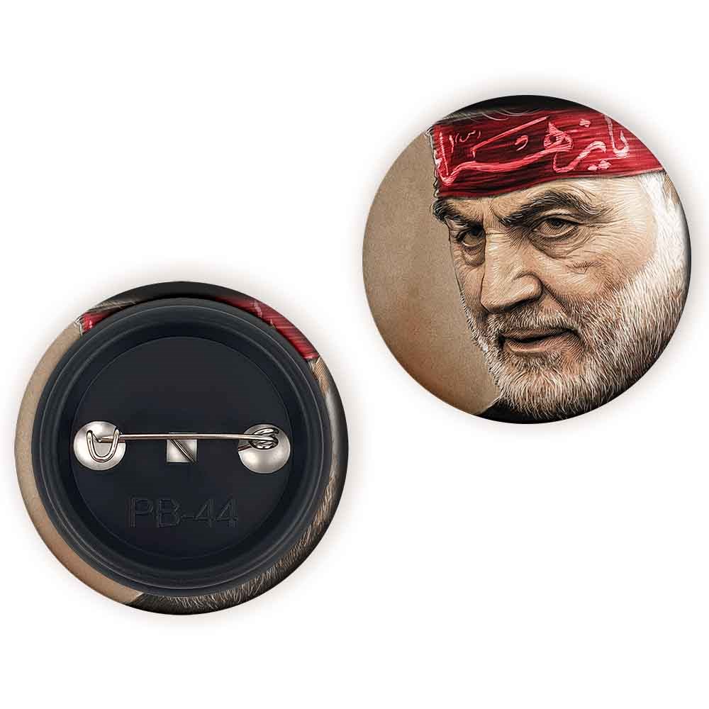 پیکسل 44 میلی متری سردار قاسم سلیمانی خندالو با روکش سلفون حرارتی مات مخملی ضدخش و قطعه پشتی رنگی تولید شده است.پلاستیکی پشت پیکسل با سوزن یک تکه ثابت و بدون لغزش و جا به جایی، ایستایی بسیار بهتری نسبت به پشتی فلزی پیکسل دارند که این مهم در تولید این محصول نیز رعایت شده است.