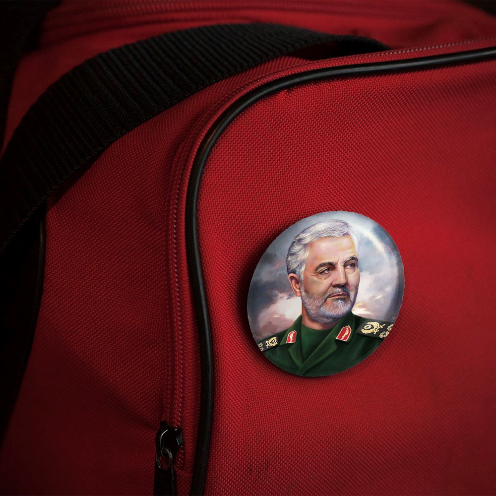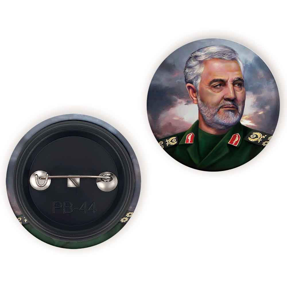 پیکسل 44 میلی متری سردار قاسم سلیمانی خندالو با روکش سلفون حرارتی مات مخملی ضدخش و قطعه پشتی رنگی تولید شده است.پلاستیکی پشت پیکسل با سوزن یک تکه ثابت و بدون لغزش و جا به جایی، ایستایی بسیار بهتری نسبت به پشتی فلزی پیکسل دارند که این مهم در تولید این محصول نیز رعایت شده است.