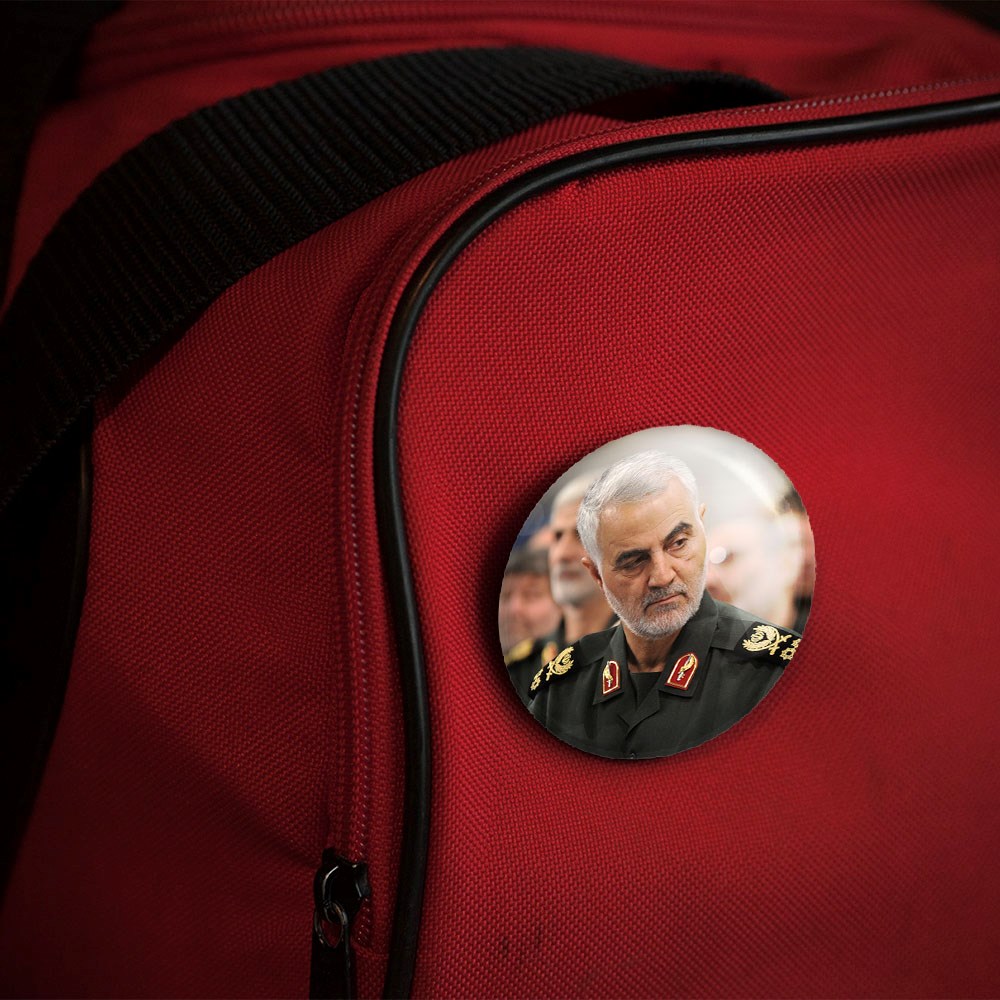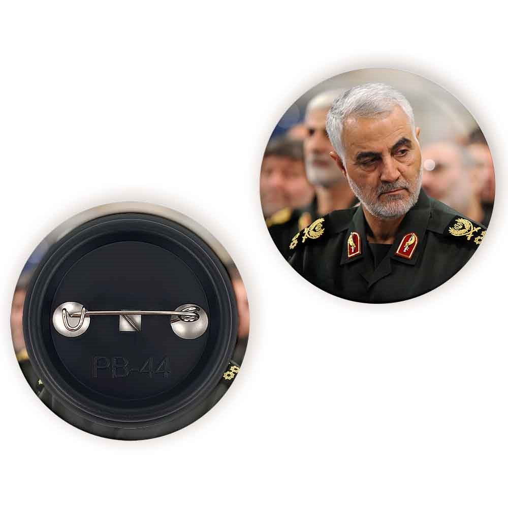 پیکسل 44 میلی متری سردار قاسم سلیمانی خندالو با روکش سلفون حرارتی مات مخملی ضدخش و قطعه پشتی رنگی تولید شده است.پلاستیکی پشت پیکسل با سوزن یک تکه ثابت و بدون لغزش و جا به جایی، ایستایی بسیار بهتری نسبت به پشتی فلزی پیکسل دارند که این مهم در تولید این محصول نیز رعایت شده است.