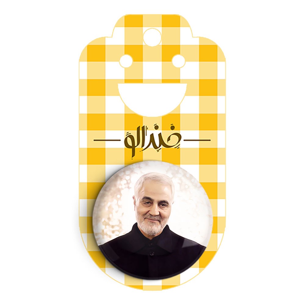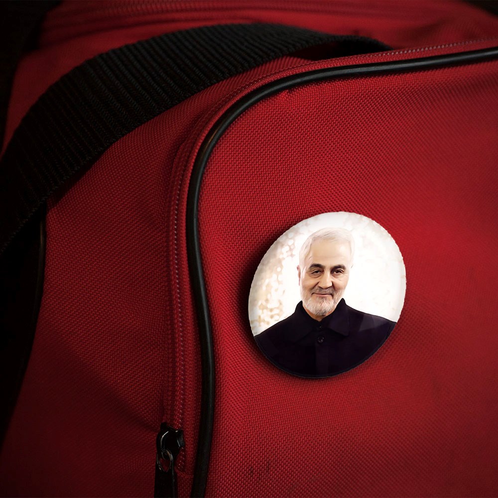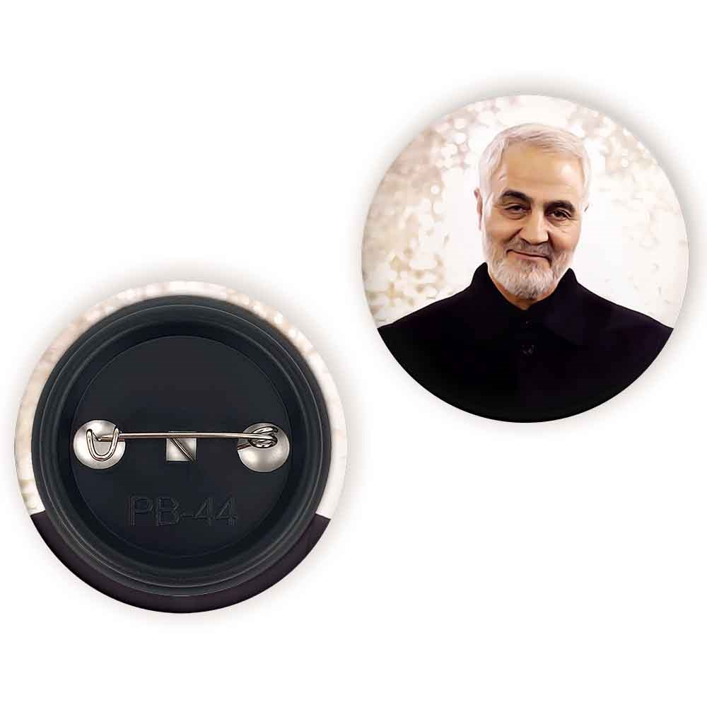پیکسل 44 میلی متری سردار قاسم سلیمانی خندالو با روکش سلفون حرارتی مات مخملی ضدخش و قطعه پشتی رنگی تولید شده است.پلاستیکی پشت پیکسل با سوزن یک تکه ثابت و بدون لغزش و جا به جایی، ایستایی بسیار بهتری نسبت به پشتی فلزی پیکسل دارند که این مهم در تولید این محصول نیز رعایت شده است.