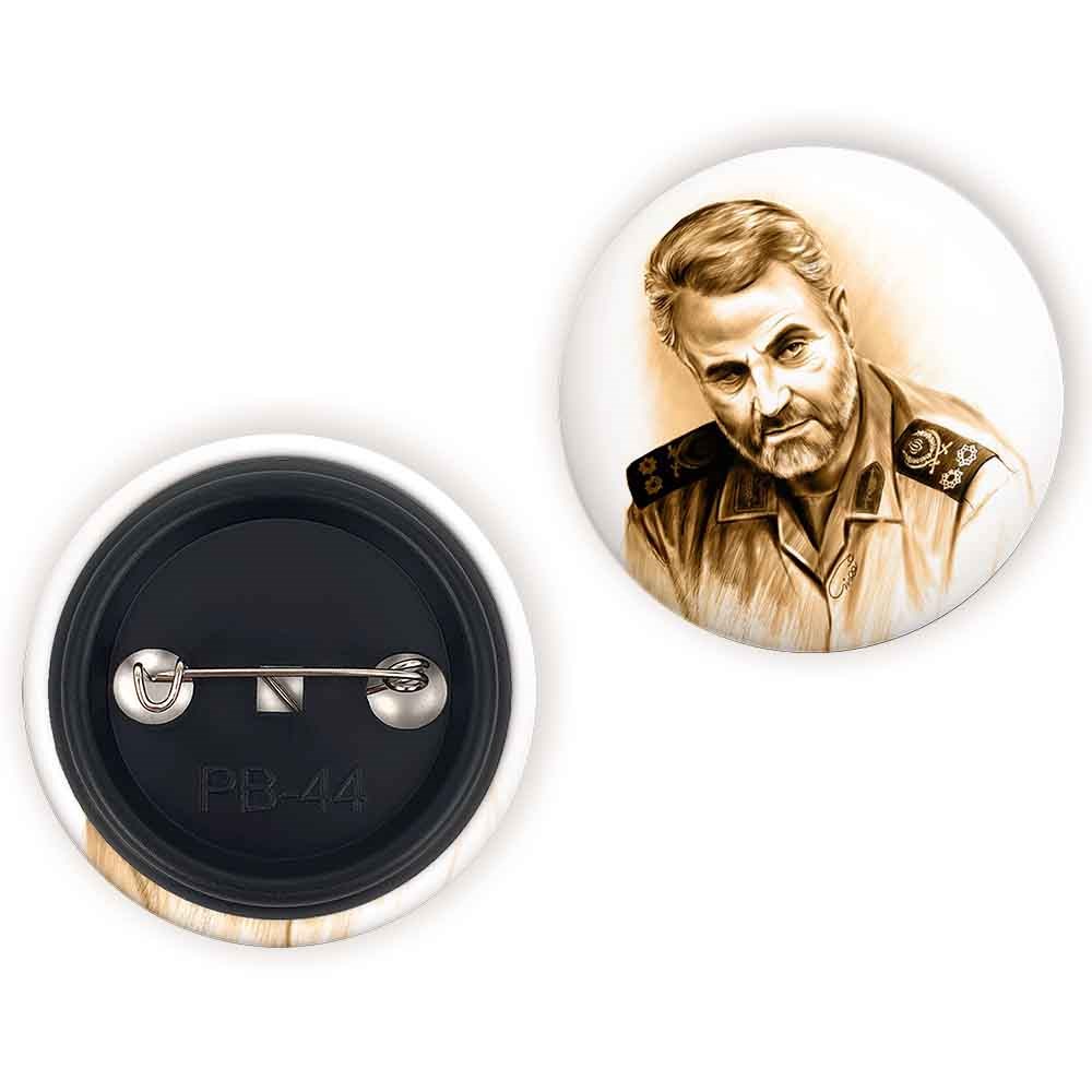پیکسل 44 میلی متری سردار قاسم سلیمانی خندالو با روکش سلفون حرارتی مات مخملی ضدخش و قطعه پشتی رنگی تولید شده است.پلاستیکی پشت پیکسل با سوزن یک تکه ثابت و بدون لغزش و جا به جایی، ایستایی بسیار بهتری نسبت به پشتی فلزی پیکسل دارند که این مهم در تولید این محصول نیز رعایت شده است.