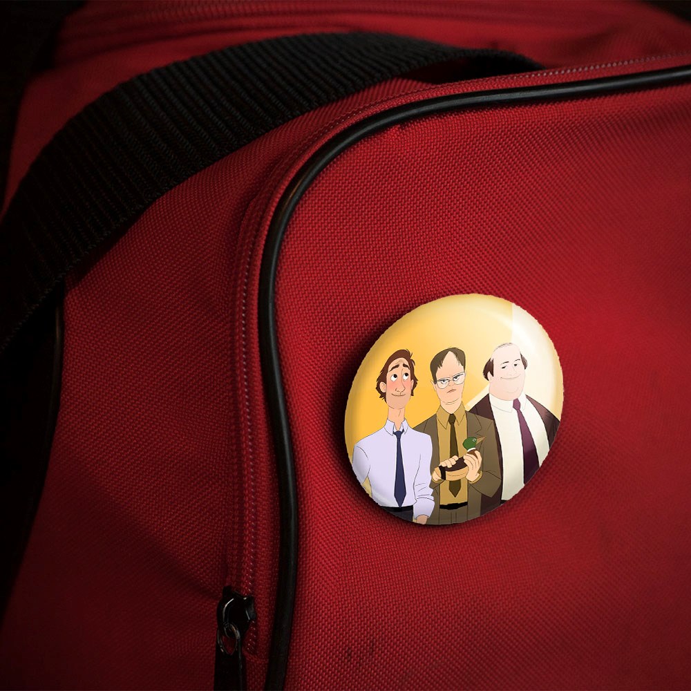 پیکسل 44 میلی متری سریال آفیس The Office خندالو با روکش سلفون حرارتی مات مخملی ضدخش و قطعه پشتی رنگی تولید شده است.پلاستیکی پشت پیکسل با سوزن یک تکه ثابت و بدون لغزش و جا به جایی، ایستایی بسیار بهتری نسبت به پشتی فلزی پیکسل دارند که این مهم در تولید این محصول نیز رعایت شده است.