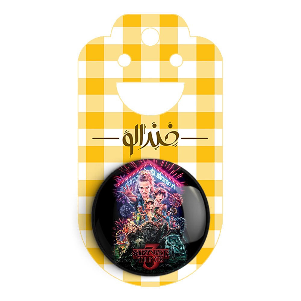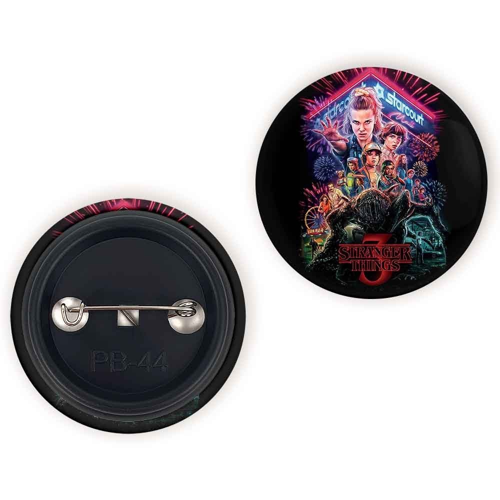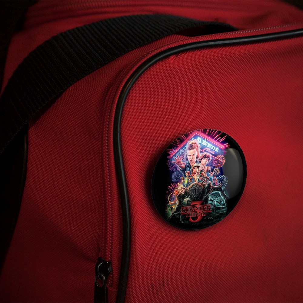 پیکسل 44 میلی متری سریال استرنجر تینگز Stranger Things خندالو با روکش سلفون حرارتی مات مخملی ضدخش و قطعه پشتی رنگی تولید شده است.پلاستیکی پشت پیکسل با سوزن یک تکه ثابت و بدون لغزش و جا به جایی، ایستایی بسیار بهتری نسبت به پشتی فلزی پیکسل دارند که این مهم در تولید این محصول نیز رعایت شده است.