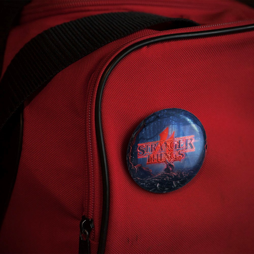 پیکسل 44 میلی متری سریال استرنجر تینگز Stranger Things خندالو با روکش سلفون حرارتی مات مخملی ضدخش و قطعه پشتی رنگی تولید شده است.پلاستیکی پشت پیکسل با سوزن یک تکه ثابت و بدون لغزش و جا به جایی، ایستایی بسیار بهتری نسبت به پشتی فلزی پیکسل دارند که این مهم در تولید این محصول نیز رعایت شده است.