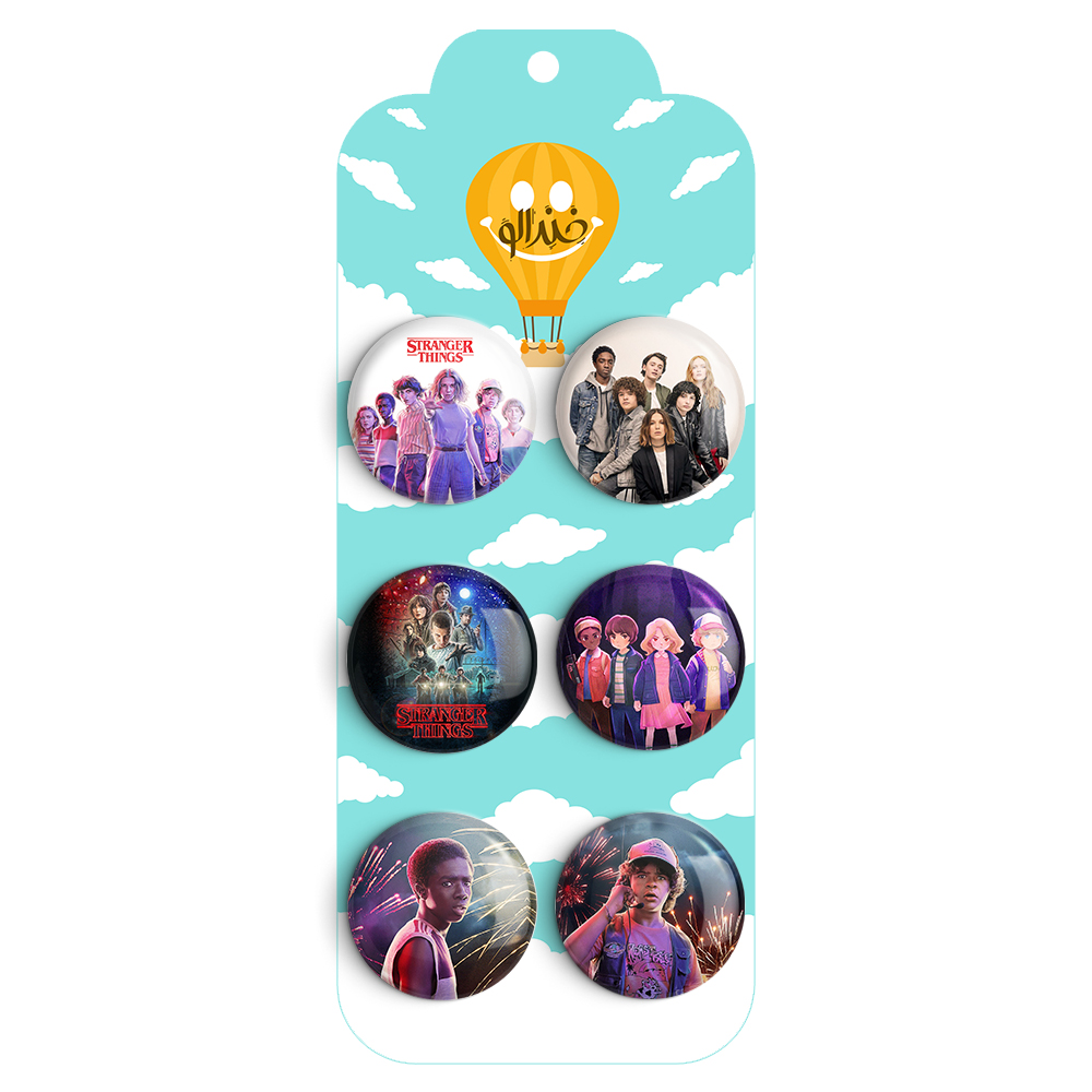 مجموعه 6 عددی پیکسل خندالو طرح سریال استرینجرتینگز (Stranger things) با روکش سلفون حرارتی براق ضدخش و قطعه پشتی رنگی تولید شده است. قطعات پشتی از میان 6 رنگ سفید، مشکی، صورتی، زرد، آبی و قرمز که با توجه به نوع و رنگبندی طرح روی پیکسل انتخاب شده اند تولید می شود و در هر بسته بندی مطابق عکس محصول می باشد. قطعات پلاستیکی پشت پیکسل با سوزن یک تکه ثابت و بدون لغزش و جا به جایی، ایستایی بسیار بهتری نسبت به پشتی فلزی پیکسل دارند که این مهم در تولید این محصول نیز رعایت شده است. چاپ پیکسل نیز با دستگاه های استاندارد و با بهترین سطح کیفی صورت گرفته و طرح با شفافیتی مثال زدنی و با سلفونی بدون شکست نور بر روی پیکسل نقش بسته است. همچنین بسته بندی جذاب و مینیمال پیکسل ها، آنها را مناسب هدیه کرده است..