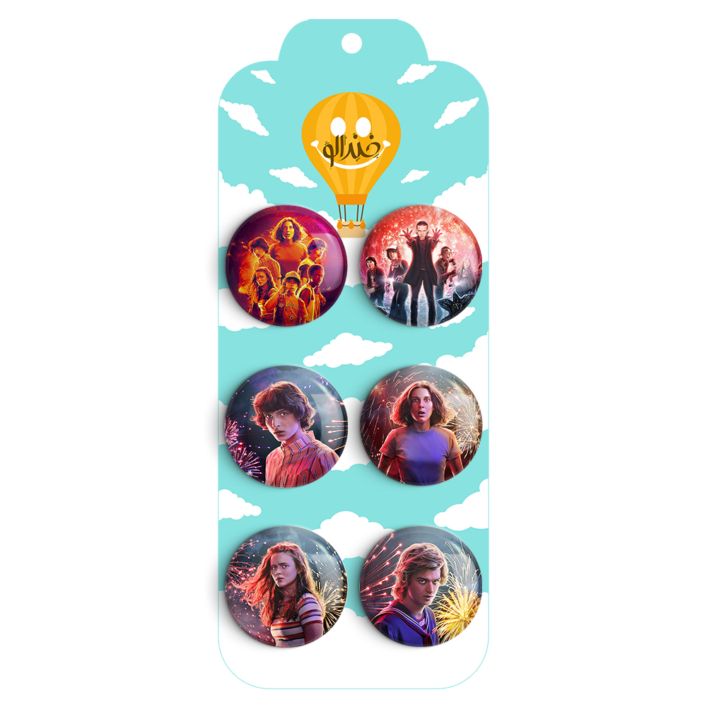 مجموعه 6 عددی پیکسل خندالو طرح سریال استرینجرتینگز (Stranger things) با روکش سلفون حرارتی براق ضدخش و قطعه پشتی رنگی تولید شده است. قطعات پشتی از میان 6 رنگ سفید، مشکی، صورتی، زرد، آبی و قرمز که با توجه به نوع و رنگبندی طرح روی پیکسل انتخاب شده اند تولید می شود و در هر بسته بندی مطابق عکس محصول می باشد. قطعات پلاستیکی پشت پیکسل با سوزن یک تکه ثابت و بدون لغزش و جا به جایی، ایستایی بسیار بهتری نسبت به پشتی فلزی پیکسل دارند که این مهم در تولید این محصول نیز رعایت شده است. چاپ پیکسل نیز با دستگاه های استاندارد و با بهترین سطح کیفی صورت گرفته و طرح با شفافیتی مثال زدنی و با سلفونی بدون شکست نور بر روی پیکسل نقش بسته است. همچنین بسته بندی جذاب و مینیمال پیکسل ها، آنها را مناسب هدیه کرده است..