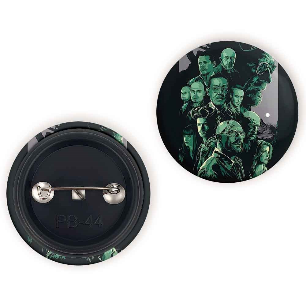 پیکسل 44 میلی متری سریال بریکینگ بد Breaking Bad خندالو با روکش سلفون حرارتی مات مخملی ضدخش و قطعه پشتی رنگی تولید شده است.پلاستیکی پشت پیکسل با سوزن یک تکه ثابت و بدون لغزش و جا به جایی، ایستایی بسیار بهتری نسبت به پشتی فلزی پیکسل دارند که این مهم در تولید این محصول نیز رعایت شده است.
