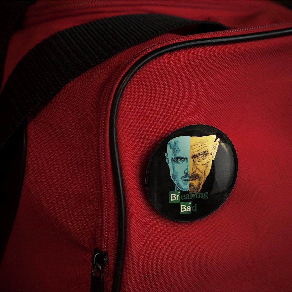 پیکسل 44 میلی متری سریال بریکینگ بد Breaking Bad خندالو با روکش سلفون حرارتی مات مخملی ضدخش و قطعه پشتی رنگی تولید شده است.پلاستیکی پشت پیکسل با سوزن یک تکه ثابت و بدون لغزش و جا به جایی، ایستایی بسیار بهتری نسبت به پشتی فلزی پیکسل دارند که این مهم در تولید این محصول نیز رعایت شده است.