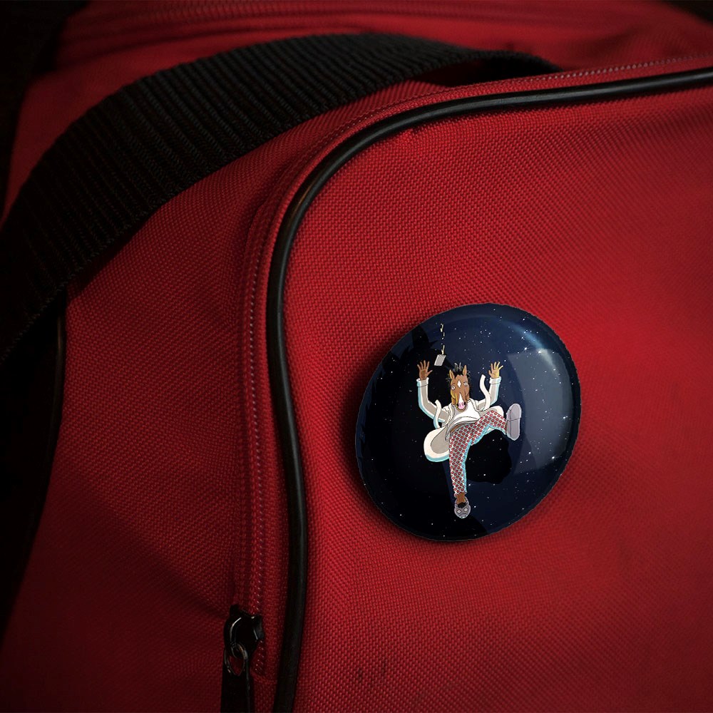 پیکسل 44 میلی متری سریال بوجک هورسمن Bojack Horseman خندالو با روکش سلفون حرارتی مات مخملی ضدخش و قطعه پشتی رنگی تولید شده است.پلاستیکی پشت پیکسل با سوزن یک تکه ثابت و بدون لغزش و جا به جایی، ایستایی بسیار بهتری نسبت به پشتی فلزی پیکسل دارند که این مهم در تولید این محصول نیز رعایت شده است.