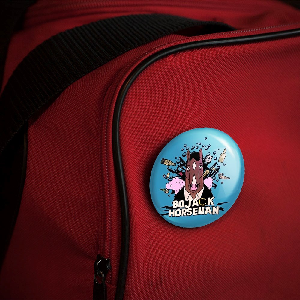 پیکسل 44 میلی متری سریال بوجک هورسمن Bojack Horseman خندالو با روکش سلفون حرارتی مات مخملی ضدخش و قطعه پشتی رنگی تولید شده است.پلاستیکی پشت پیکسل با سوزن یک تکه ثابت و بدون لغزش و جا به جایی، ایستایی بسیار بهتری نسبت به پشتی فلزی پیکسل دارند که این مهم در تولید این محصول نیز رعایت شده است.