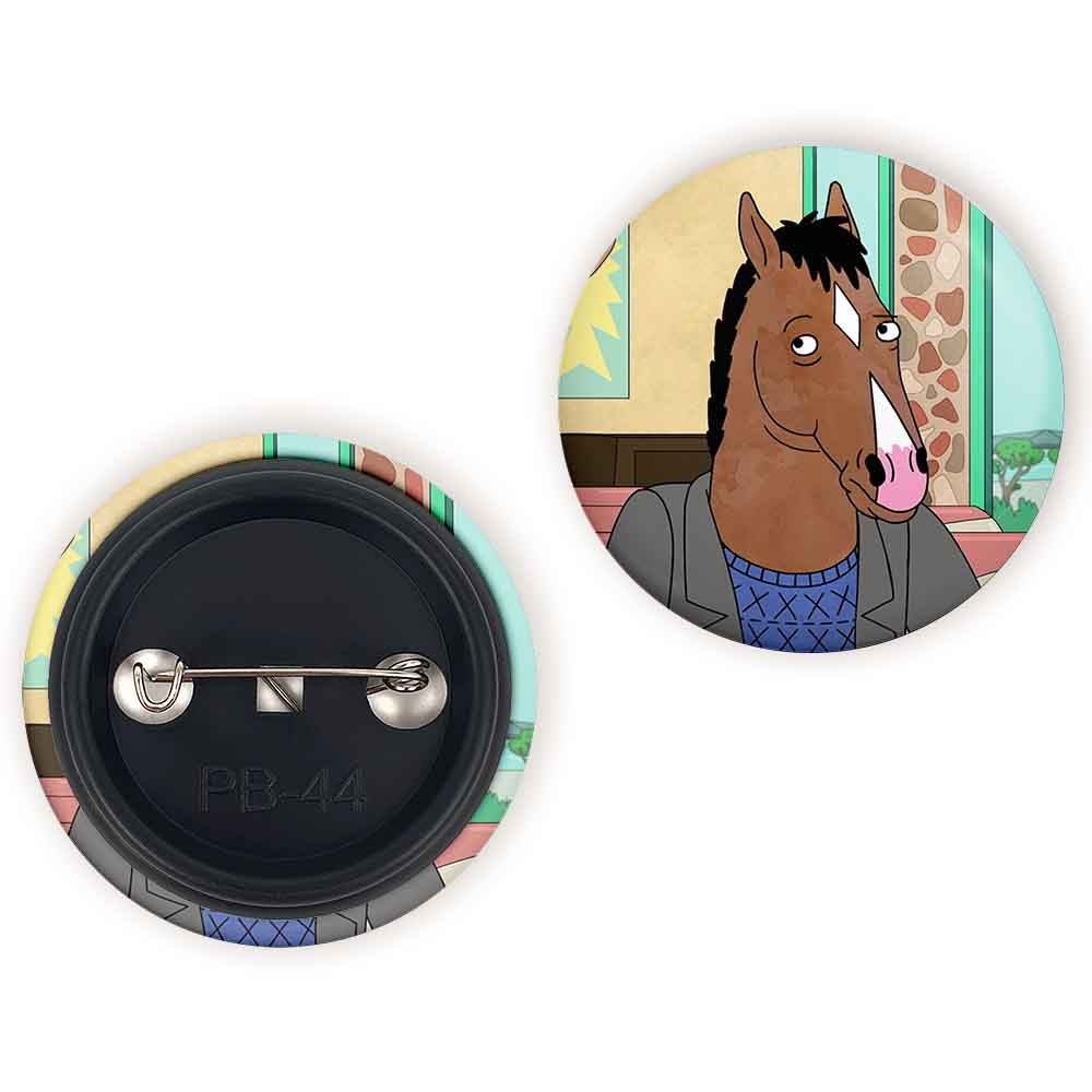 پیکسل 44 میلی متری سریال بوجک هورسمن Bojack Horseman خندالو با روکش سلفون حرارتی مات مخملی ضدخش و قطعه پشتی رنگی تولید شده است.پلاستیکی پشت پیکسل با سوزن یک تکه ثابت و بدون لغزش و جا به جایی، ایستایی بسیار بهتری نسبت به پشتی فلزی پیکسل دارند که این مهم در تولید این محصول نیز رعایت شده است.