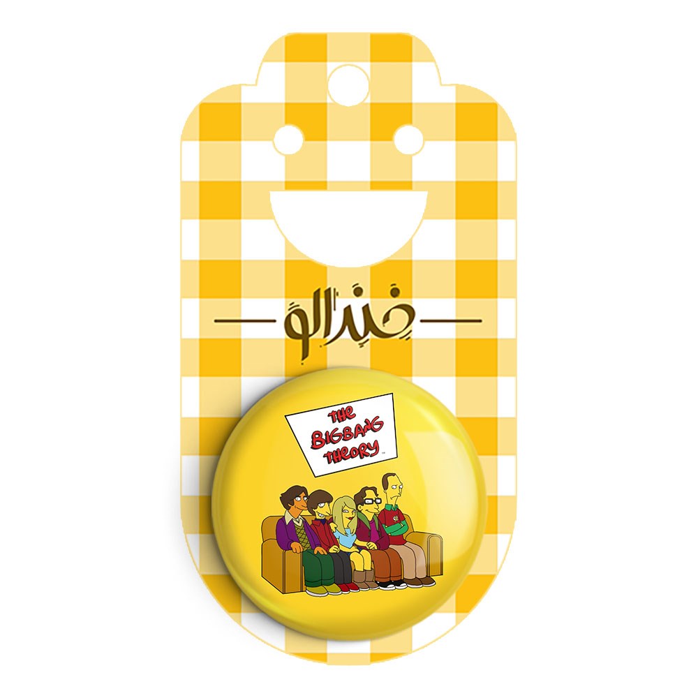 پیکسل 44 میلی متری سریال تئوری بیگ بنگ The Big Bang Theory خندالو با روکش سلفون حرارتی مات مخملی ضدخش و قطعه پشتی رنگی تولید شده است.پلاستیکی پشت پیکسل با سوزن یک تکه ثابت و بدون لغزش و جا به جایی، ایستایی بسیار بهتری نسبت به پشتی فلزی پیکسل دارند که این مهم در تولید این محصول نیز رعایت شده است.