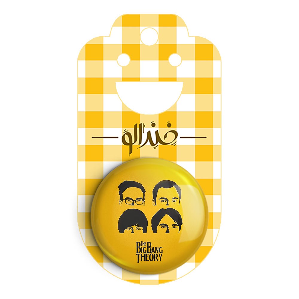 پیکسل 44 میلی متری سریال تئوری بیگ بنگ The Big Bang Theory خندالو با روکش سلفون حرارتی مات مخملی ضدخش و قطعه پشتی رنگی تولید شده است.پلاستیکی پشت پیکسل با سوزن یک تکه ثابت و بدون لغزش و جا به جایی، ایستایی بسیار بهتری نسبت به پشتی فلزی پیکسل دارند که این مهم در تولید این محصول نیز رعایت شده است.