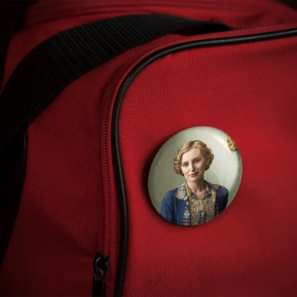 پیکسل 44 میلی متری سریال دانتون ابی Downton Abbey خندالو با روکش سلفون حرارتی مات مخملی ضدخش و قطعه پشتی رنگی تولید شده است.پلاستیکی پشت پیکسل با سوزن یک تکه ثابت و بدون لغزش و جا به جایی، ایستایی بسیار بهتری نسبت به پشتی فلزی پیکسل دارند که این مهم در تولید این محصول نیز رعایت شده است.