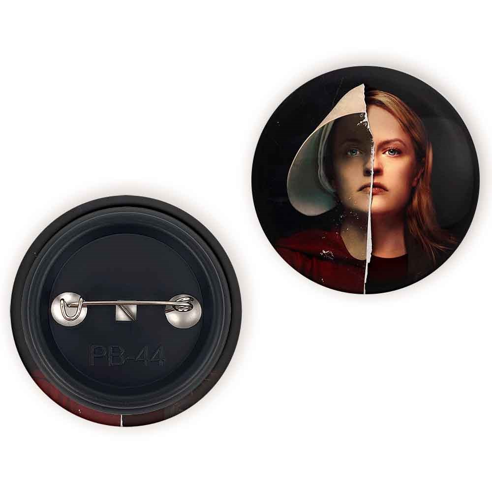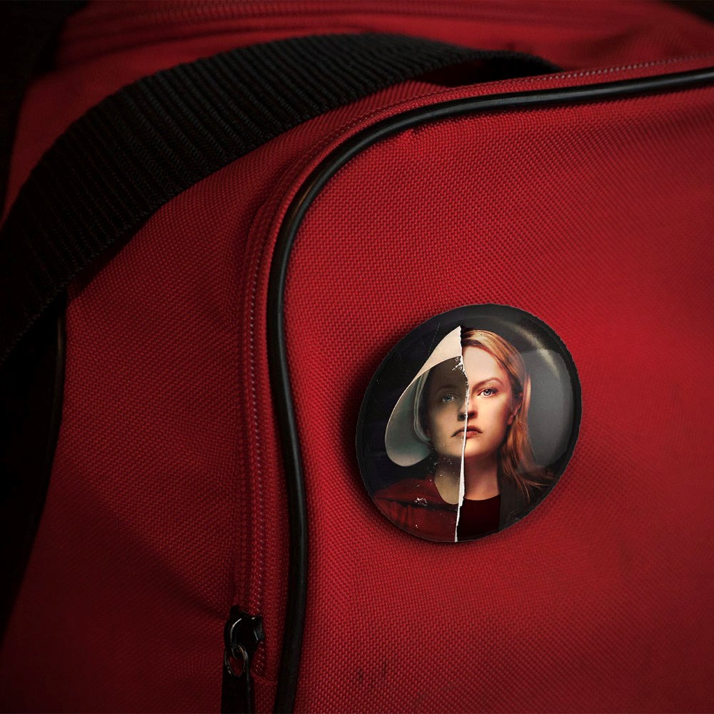 پیکسل 44 میلی متری سریال سرگذشت یک ندیمه The Handmaid’s Tale خندالو با روکش سلفون حرارتی مات مخملی ضدخش و قطعه پشتی رنگی تولید شده است.پلاستیکی پشت پیکسل با سوزن یک تکه ثابت و بدون لغزش و جا به جایی، ایستایی بسیار بهتری نسبت به پشتی فلزی پیکسل دارند که این مهم در تولید این محصول نیز رعایت شده است.
