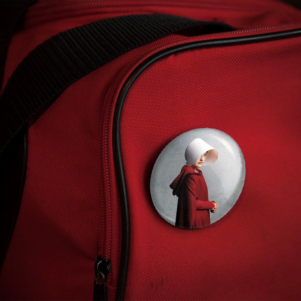 پیکسل 44 میلی متری سریال سرگذشت یک ندیمه The Handmaid’s Tale خندالو با روکش سلفون حرارتی مات مخملی ضدخش و قطعه پشتی رنگی تولید شده است.پلاستیکی پشت پیکسل با سوزن یک تکه ثابت و بدون لغزش و جا به جایی، ایستایی بسیار بهتری نسبت به پشتی فلزی پیکسل دارند که این مهم در تولید این محصول نیز رعایت شده است.