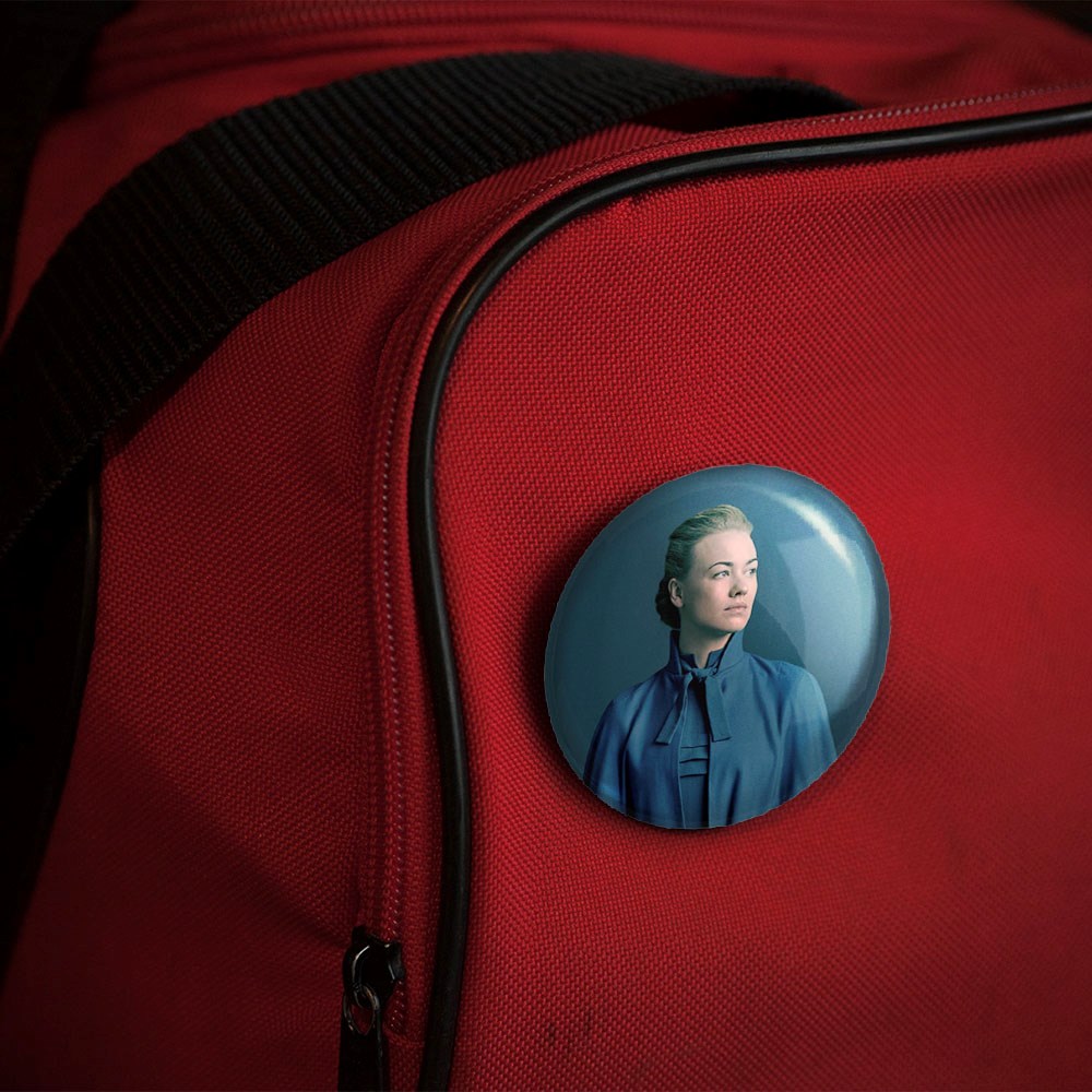 پیکسل 44 میلی متری سریال سرگذشت یک ندیمه The Handmaid’s Tale خندالو با روکش سلفون حرارتی مات مخملی ضدخش و قطعه پشتی رنگی تولید شده است.پلاستیکی پشت پیکسل با سوزن یک تکه ثابت و بدون لغزش و جا به جایی، ایستایی بسیار بهتری نسبت به پشتی فلزی پیکسل دارند که این مهم در تولید این محصول نیز رعایت شده است.
