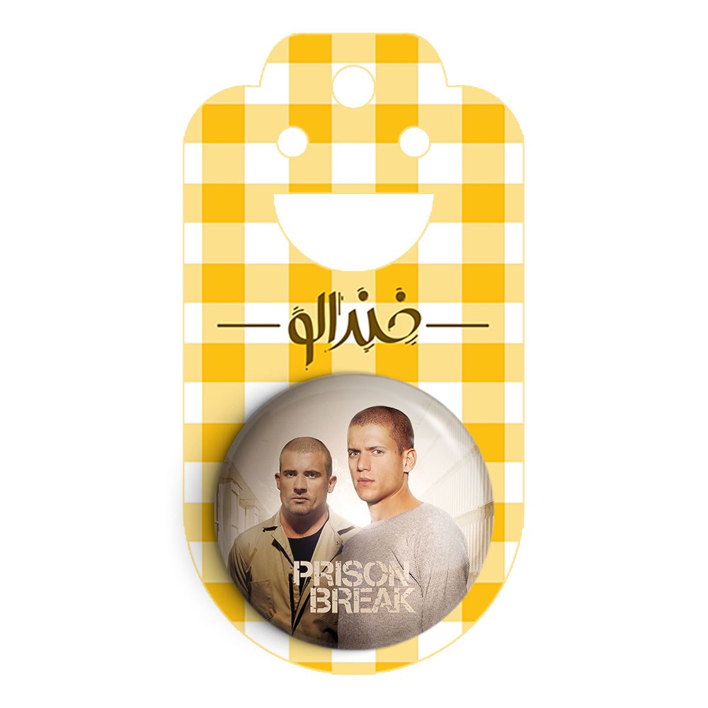 پیکسل 44 میلی متری سریال فرار از زندان Prison Break خندالو با روکش سلفون حرارتی مات مخملی ضدخش و قطعه پشتی رنگی تولید شده است.پلاستیکی پشت پیکسل با سوزن یک تکه ثابت و بدون لغزش و جا به جایی، ایستایی بسیار بهتری نسبت به پشتی فلزی پیکسل دارند که این مهم در تولید این محصول نیز رعایت شده است.