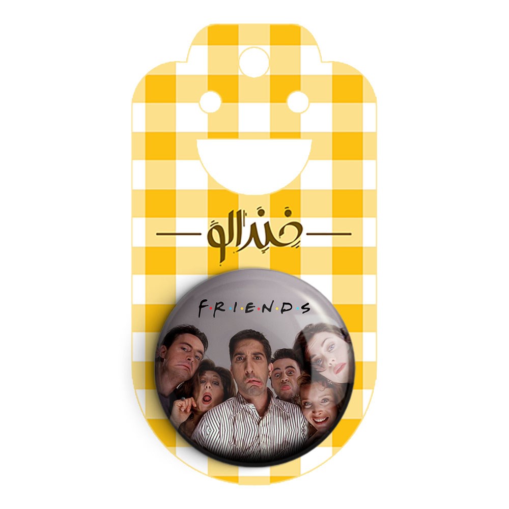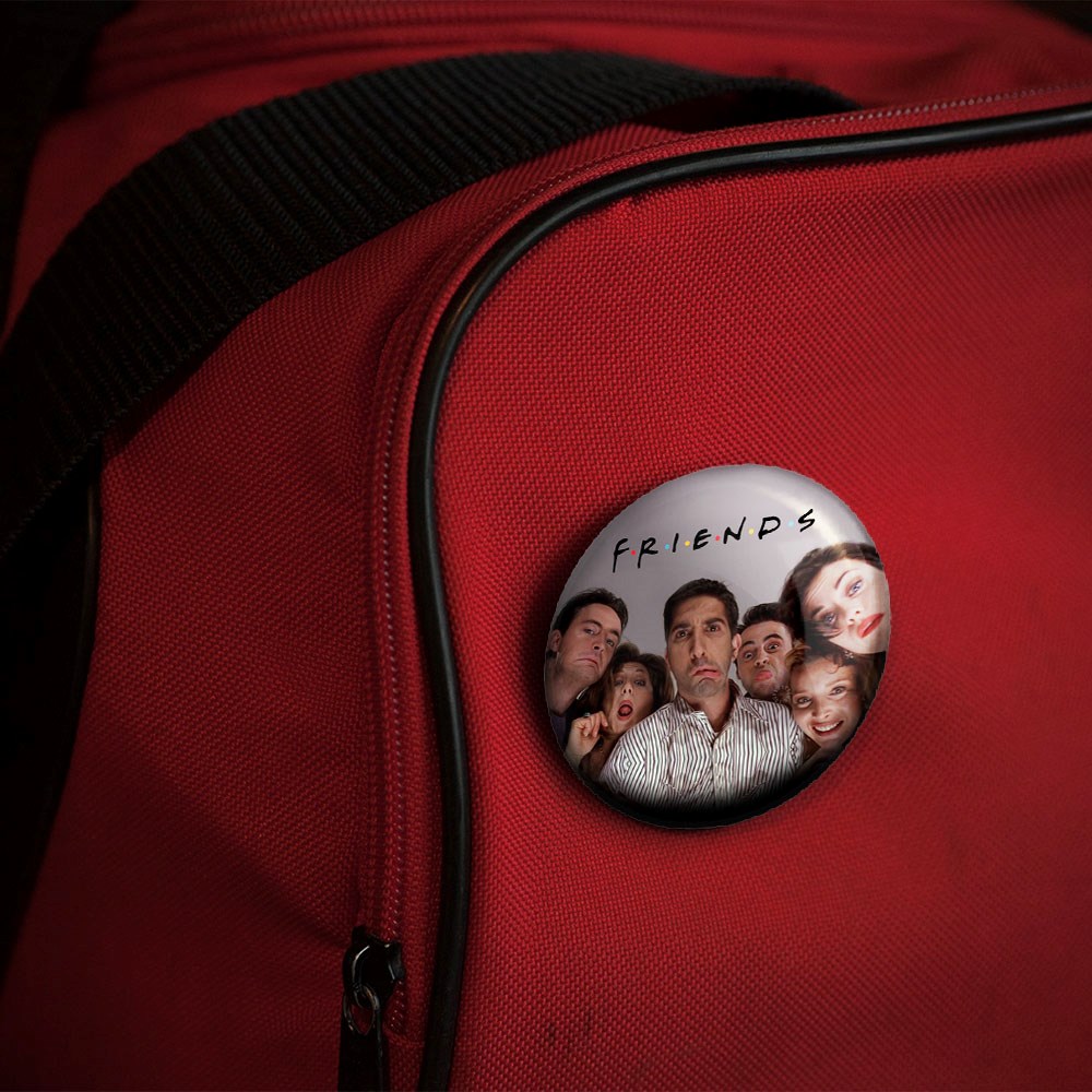 پیکسل 44 میلی متری سریال فرندز Friends خندالو با روکش سلفون حرارتی مات مخملی ضدخش و قطعه پشتی رنگی تولید شده است.پلاستیکی پشت پیکسل با سوزن یک تکه ثابت و بدون لغزش و جا به جایی، ایستایی بسیار بهتری نسبت به پشتی فلزی پیکسل دارند که این مهم در تولید این محصول نیز رعایت شده است.