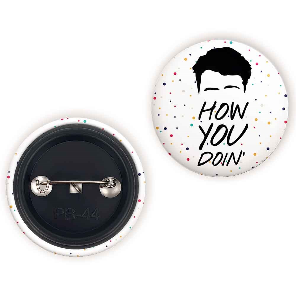 پیکسل 44 میلی متری سریال فرندز Friends خندالو با روکش سلفون حرارتی مات مخملی ضدخش و قطعه پشتی رنگی تولید شده است.پلاستیکی پشت پیکسل با سوزن یک تکه ثابت و بدون لغزش و جا به جایی، ایستایی بسیار بهتری نسبت به پشتی فلزی پیکسل دارند که این مهم در تولید این محصول نیز رعایت شده است.