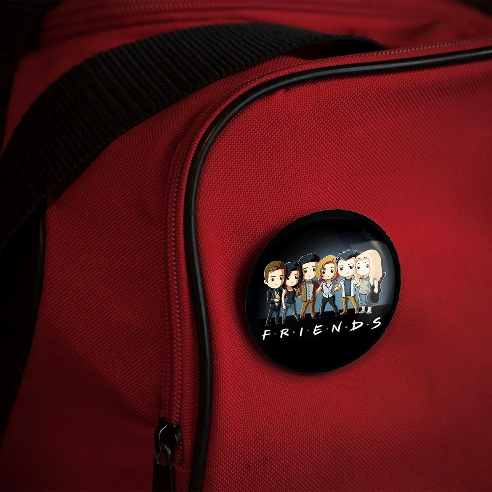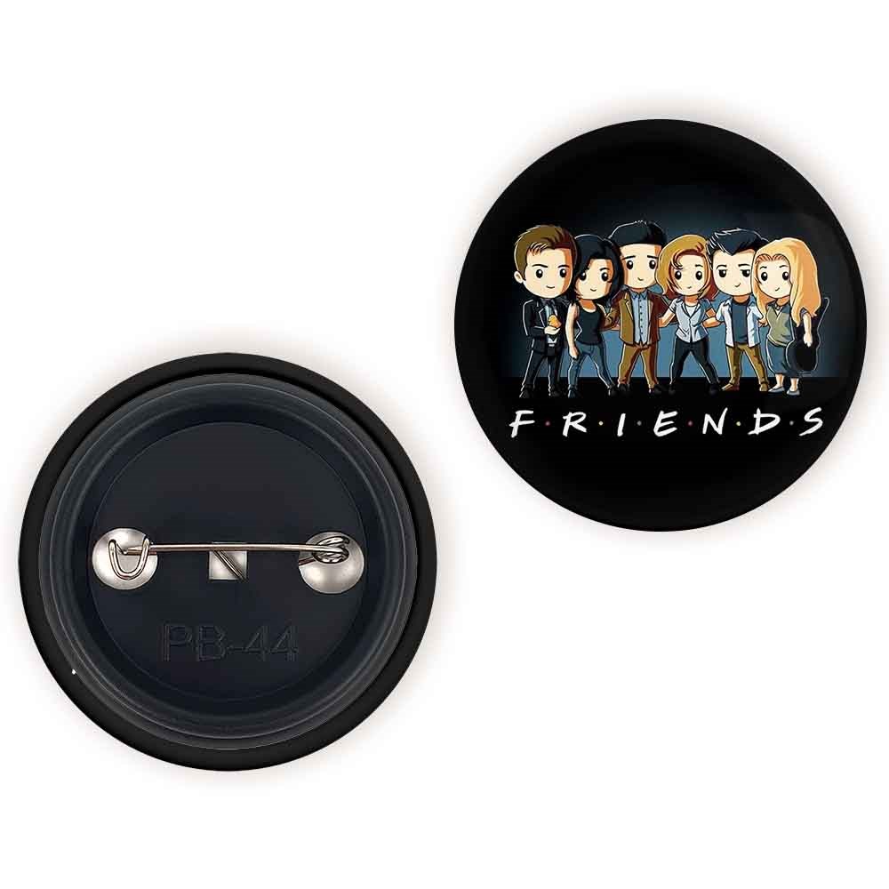 پیکسل 44 میلی متری سریال فرندز Friends خندالو با روکش سلفون حرارتی مات مخملی ضدخش و قطعه پشتی رنگی تولید شده است.پلاستیکی پشت پیکسل با سوزن یک تکه ثابت و بدون لغزش و جا به جایی، ایستایی بسیار بهتری نسبت به پشتی فلزی پیکسل دارند که این مهم در تولید این محصول نیز رعایت شده است.