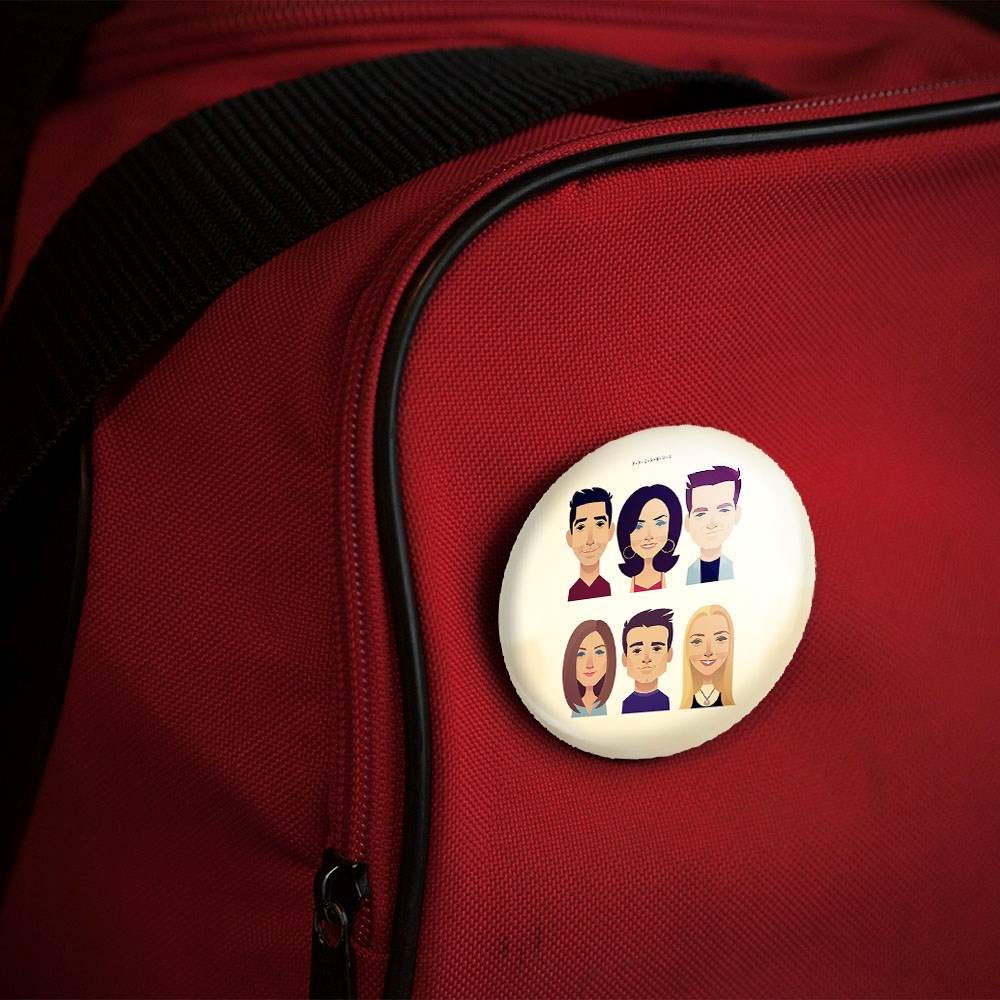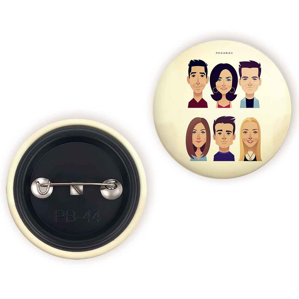 پیکسل 44 میلی متری سریال فرندز Friends خندالو با روکش سلفون حرارتی مات مخملی ضدخش و قطعه پشتی رنگی تولید شده است.پلاستیکی پشت پیکسل با سوزن یک تکه ثابت و بدون لغزش و جا به جایی، ایستایی بسیار بهتری نسبت به پشتی فلزی پیکسل دارند که این مهم در تولید این محصول نیز رعایت شده است.