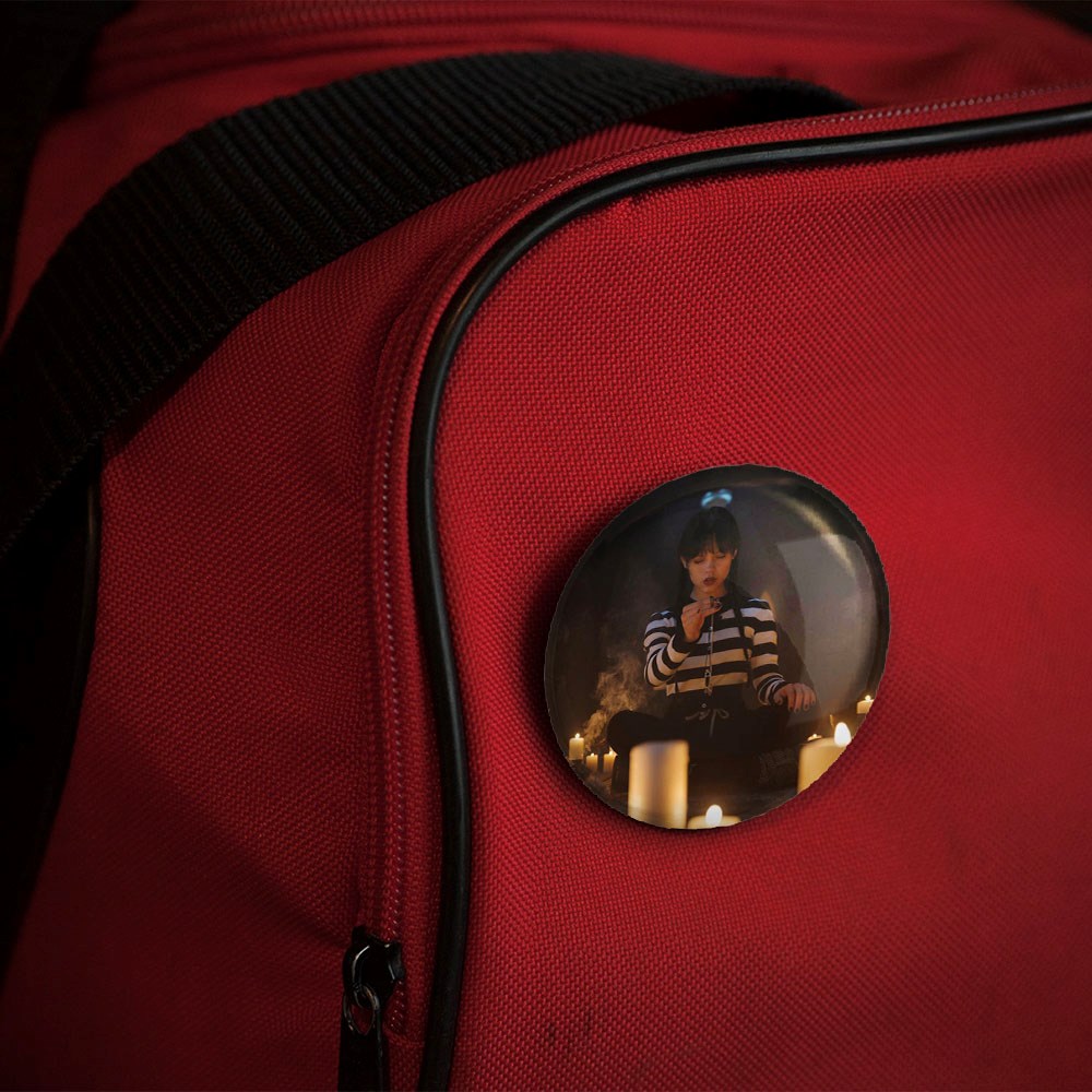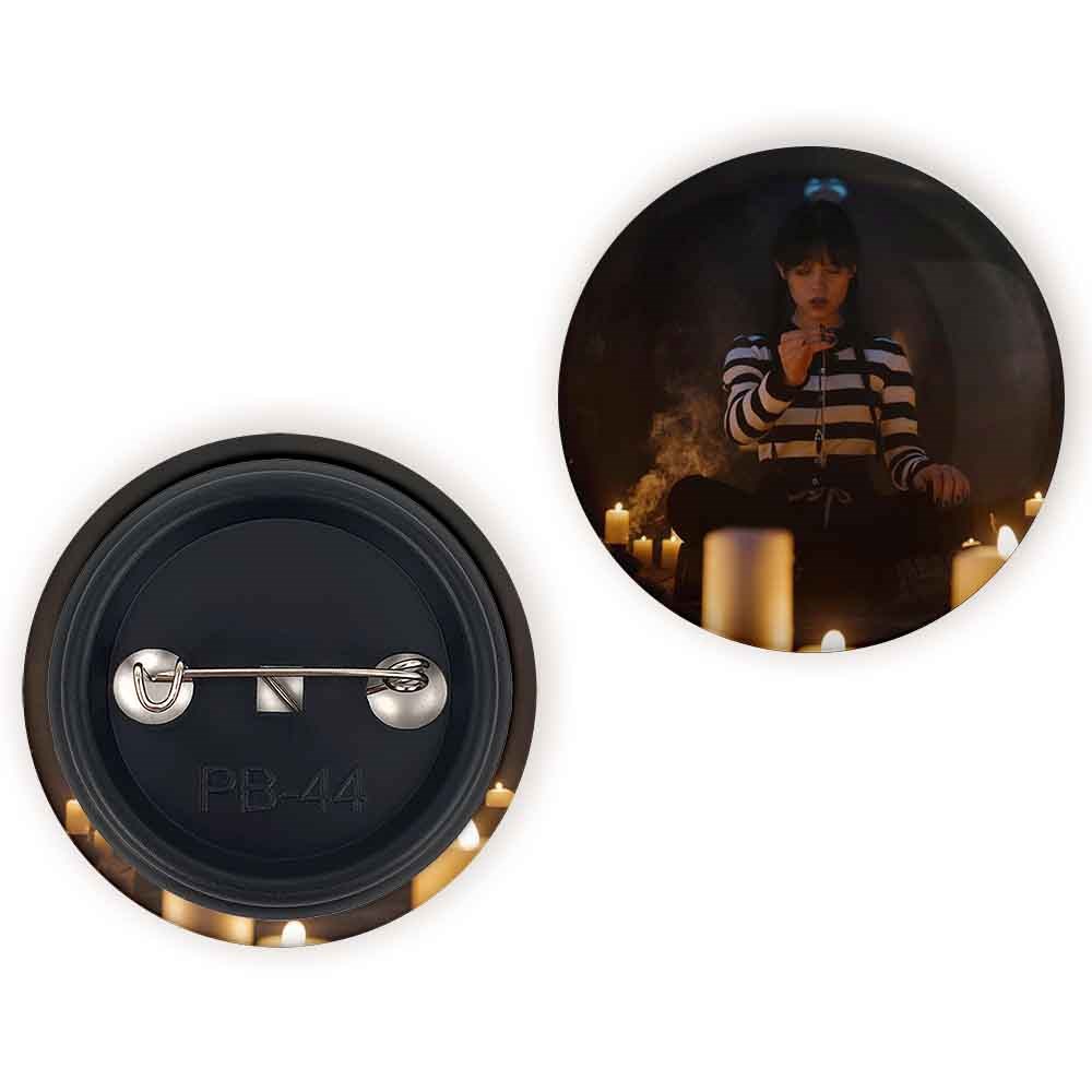 پیکسل 44 میلی متری سریال ونزدی Wednesday خندالو با روکش سلفون حرارتی مات مخملی ضدخش و قطعه پشتی رنگی تولید شده است.پلاستیکی پشت پیکسل با سوزن یک تکه ثابت و بدون لغزش و جا به جایی، ایستایی بسیار بهتری نسبت به پشتی فلزی پیکسل دارند که این مهم در تولید این محصول نیز رعایت شده است.