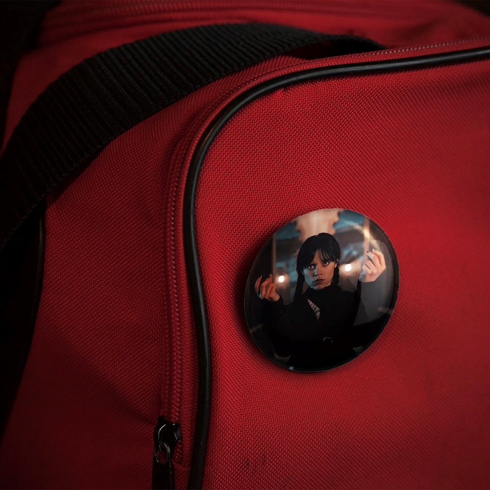 پیکسل 44 میلی متری سریال ونزدی Wednesday خندالو با روکش سلفون حرارتی مات مخملی ضدخش و قطعه پشتی رنگی تولید شده است.پلاستیکی پشت پیکسل با سوزن یک تکه ثابت و بدون لغزش و جا به جایی، ایستایی بسیار بهتری نسبت به پشتی فلزی پیکسل دارند که این مهم در تولید این محصول نیز رعایت شده است.