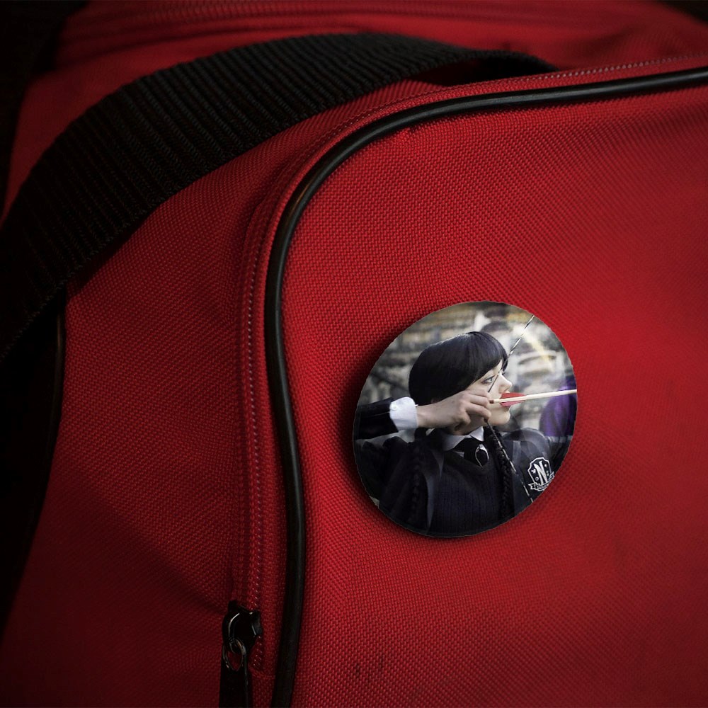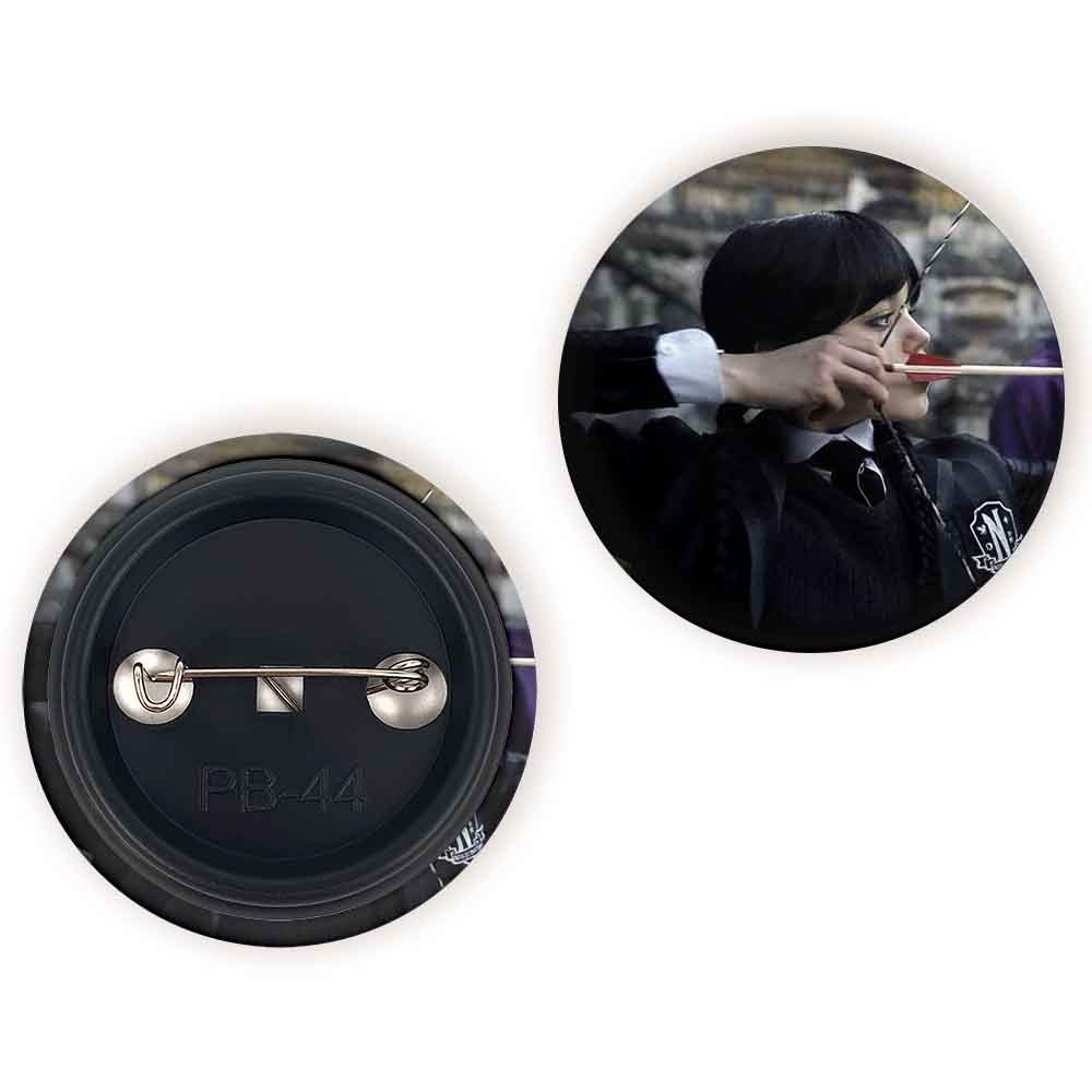 پیکسل 44 میلی متری سریال ونزدی Wednesday خندالو با روکش سلفون حرارتی مات مخملی ضدخش و قطعه پشتی رنگی تولید شده است.پلاستیکی پشت پیکسل با سوزن یک تکه ثابت و بدون لغزش و جا به جایی، ایستایی بسیار بهتری نسبت به پشتی فلزی پیکسل دارند که این مهم در تولید این محصول نیز رعایت شده است.