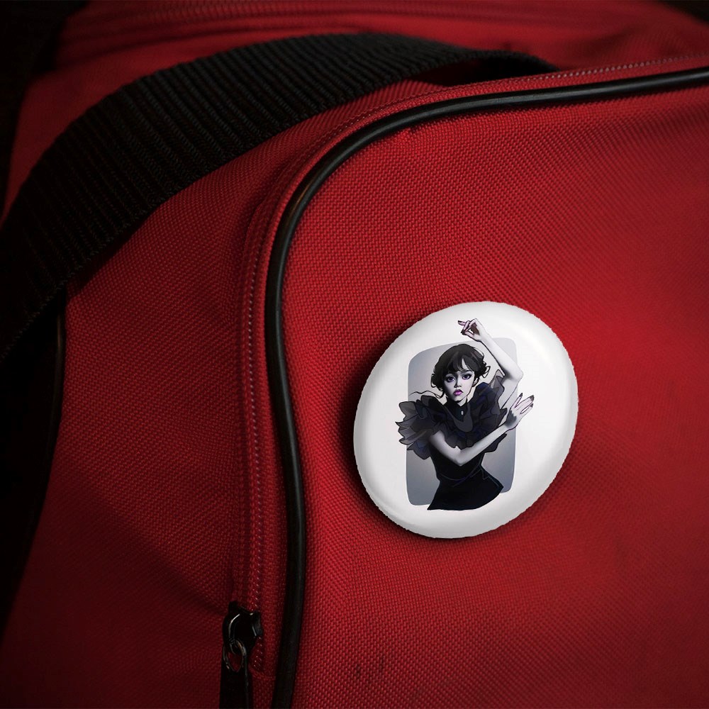 پیکسل 44 میلی متری سریال ونزدی Wednesday خندالو با روکش سلفون حرارتی مات مخملی ضدخش و قطعه پشتی رنگی تولید شده است.پلاستیکی پشت پیکسل با سوزن یک تکه ثابت و بدون لغزش و جا به جایی، ایستایی بسیار بهتری نسبت به پشتی فلزی پیکسل دارند که این مهم در تولید این محصول نیز رعایت شده است.