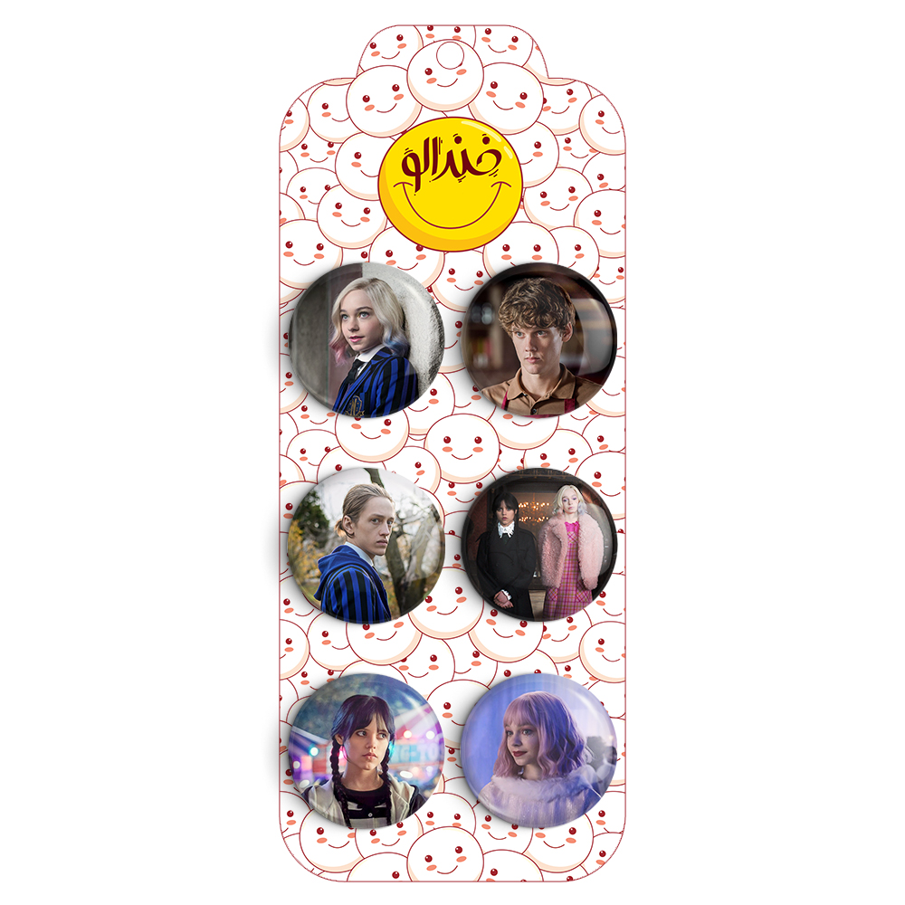 مجموعه 6 عددی پیکسل خندالو طرح سریال ونزدی (Wednesday) با روکش سلفون حرارتی براق ضدخش و قطعه پشتی رنگی تولید شده است. قطعات پشتی از میان 6 رنگ سفید، مشکی، صورتی، زرد، آبی و قرمز که با توجه به نوع و رنگبندی طرح روی پیکسل انتخاب شده اند تولید می شود و در هر بسته بندی مطابق عکس محصول می باشد.