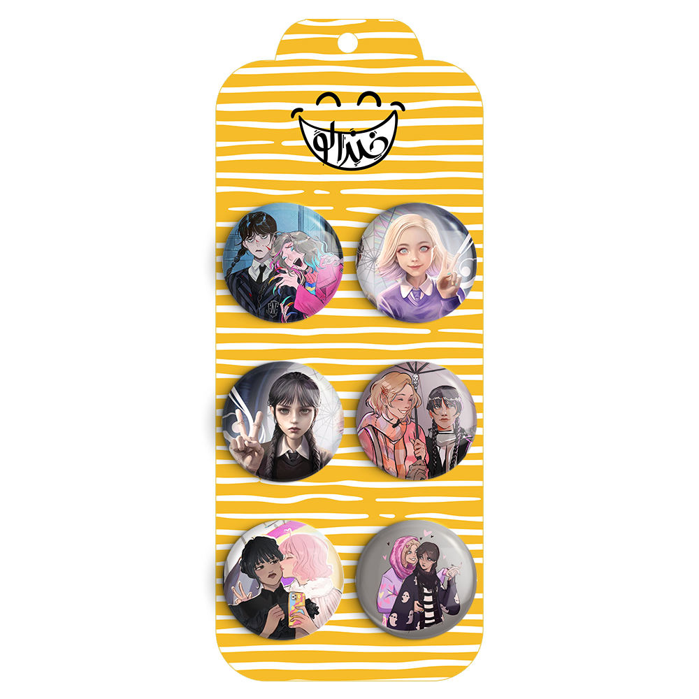 مجموعه 6 عددی پیکسل خندالو طرح سریال ونزدی (wednesday) با روکش سلفون حرارتی براق ضدخش و قطعه پشتی رنگی تولید شده است. قطعات پشتی از میان 6 رنگ سفید، مشکی، صورتی، زرد، آبی و قرمز که با توجه به نوع و رنگبندی طرح روی پیکسل انتخاب شده اند تولید می شود و در هر بسته بندی مطابق عکس محصول می باشد.