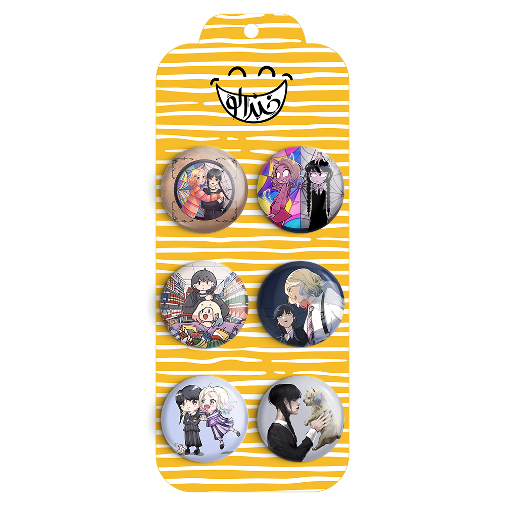 مجموعه 6 عددی پیکسل خندالو طرح سریال ونزدی (wednesday) با روکش سلفون حرارتی براق ضدخش و قطعه پشتی رنگی تولید شده است. قطعات پشتی از میان 6 رنگ سفید، مشکی، صورتی، زرد، آبی و قرمز که با توجه به نوع و رنگبندی طرح روی پیکسل انتخاب شده اند تولید می شود و در هر بسته بندی مطابق عکس محصول می باشد.