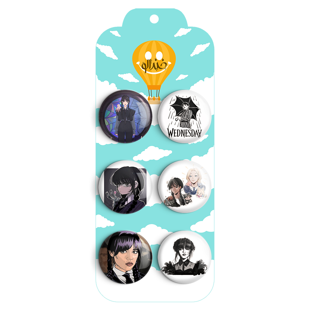 مجموعه 6 عددی پیکسل خندالو طرح سریال ونزدی (wednesday) با روکش سلفون حرارتی براق ضدخش و قطعه پشتی رنگی تولید شده است. قطعات پشتی از میان 6 رنگ سفید، مشکی، صورتی، زرد، آبی و قرمز که با توجه به نوع و رنگبندی طرح روی پیکسل انتخاب شده اند تولید می شود و در هر بسته بندی مطابق عکس محصول می باشد.