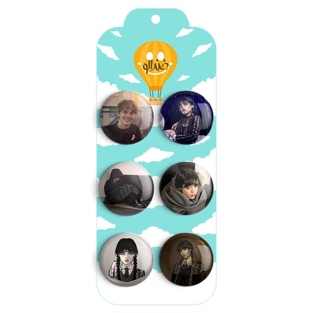 مجموعه 6 عددی پیکسل خندالو طرح سریال ونزدی (Wednesday) با روکش سلفون حرارتی براق ضدخش و قطعه پشتی رنگی تولید شده است. قطعات پشتی از میان 6 رنگ سفید، مشکی، صورتی، زرد، آبی و قرمز که با توجه به نوع و رنگبندی طرح روی پیکسل انتخاب شده اند تولید می شود و در هر بسته بندی مطابق عکس محصول می باشد.
